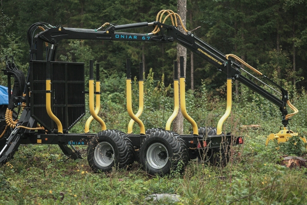 Vyvážecí vlek ONIAR 11T má rámovou konstrukci a nosnost vleku je 9 350 kg. Je konstruován do těžkých podmínek pro každodenní profi použivání.
