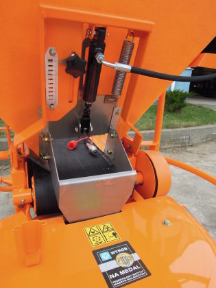 Objem násypky 0,40 m3, pohon rozmetacího ústrojí pomocí kardanu, otáčky vývodové hřídele 540 min/ot. Vlastní váha 130 kg, spodní, gumový pás pro plynulé dávkování na nerezový rozmetací kotouč. Mechanické, či hydraulické zavírání hradítka, možnost krycí plachty a vrchního síta. Laminátový zásobník i pro velmi agresivní posypový materiál. Možno dovybavit vozíčkem pro slabší traktory.