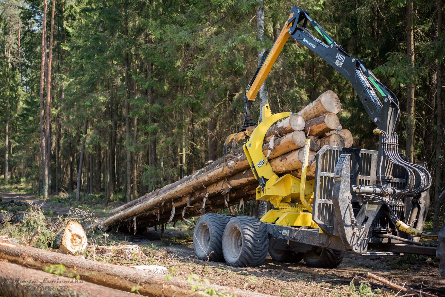 Pro zajištění převozu delších kualtin na vyvážecím vleku sevřením do kleští. Kuželové ložisko , dvě hydraulické pístnice sevření, dva kované řetězy, čelisti z oceli Strenx,