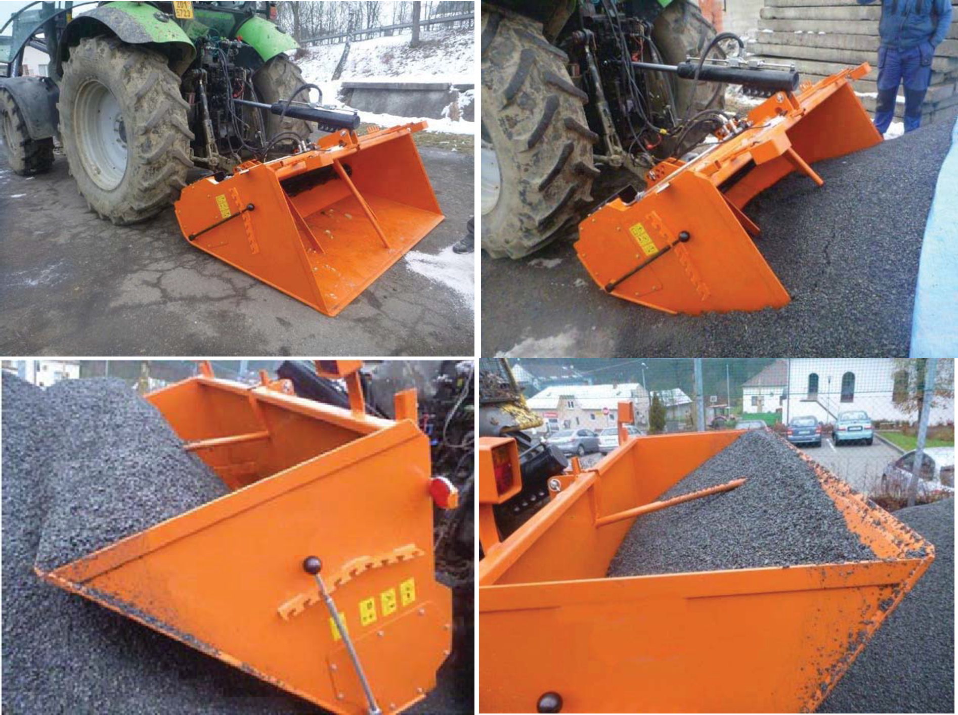 zimní údržba pozemních komunikací interním materiálem, pískem nebo směsí soli s pískem. Agregace do zadního tříbodového závěsu traktoru, optimální pracovní rychlost 10 km/h, nakládka materiálu pomocí sklopení hydraulické masivní pístnice, pohon dávkovací hřídele od samotného hydromotoru a v otáčkách 170 ot/min, plynulé dávkování materiálu bez nebezpečí úletu částic z vozovky, manuální nastavení dávkování pomocí škrtícího ventilu. Světla. Nejmenší model PM 110 a PM 110 H určen pro posyp chodníků. Agregace za malotraktory. PM 110 H – samonakládací sypač za malotraktory.