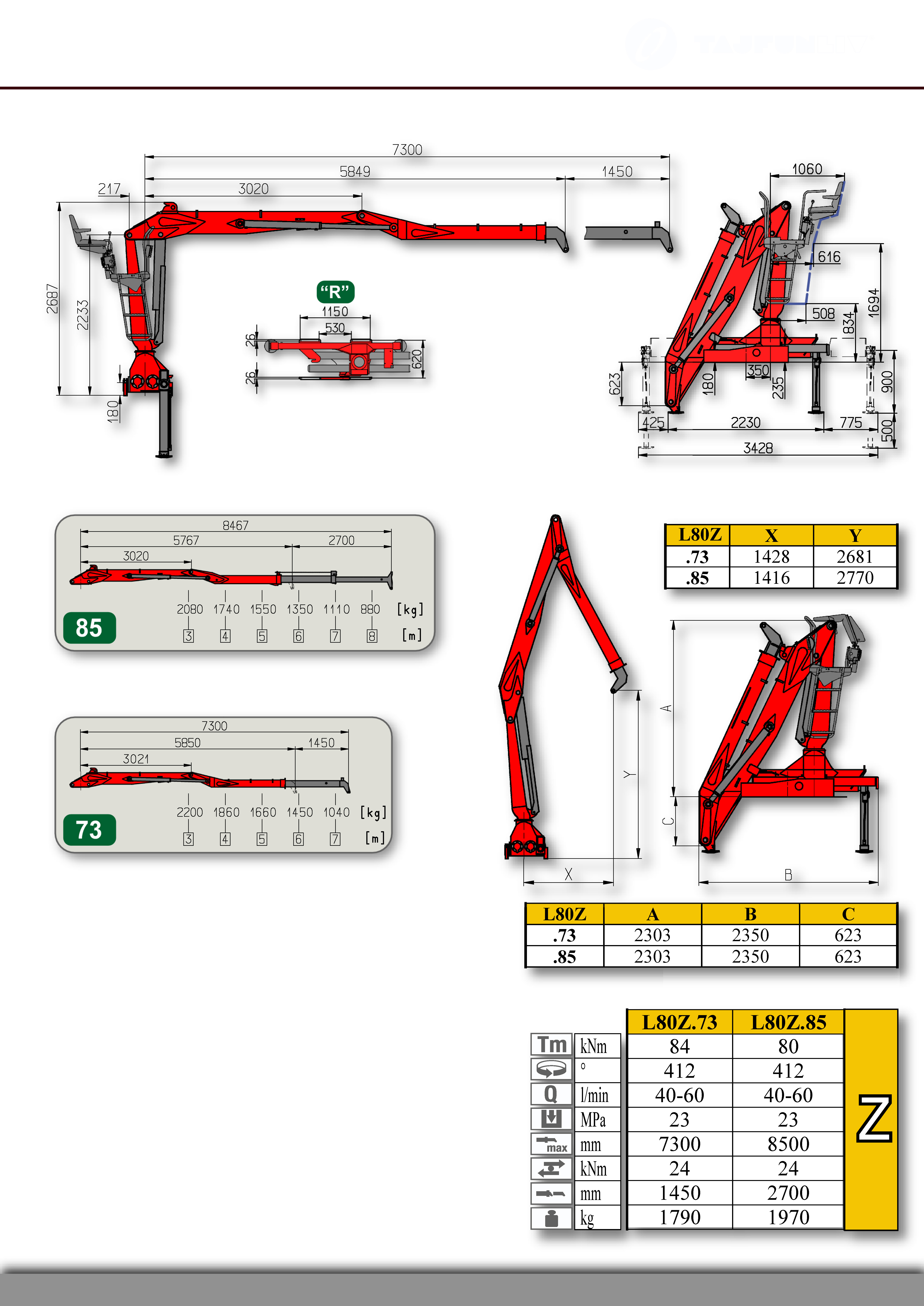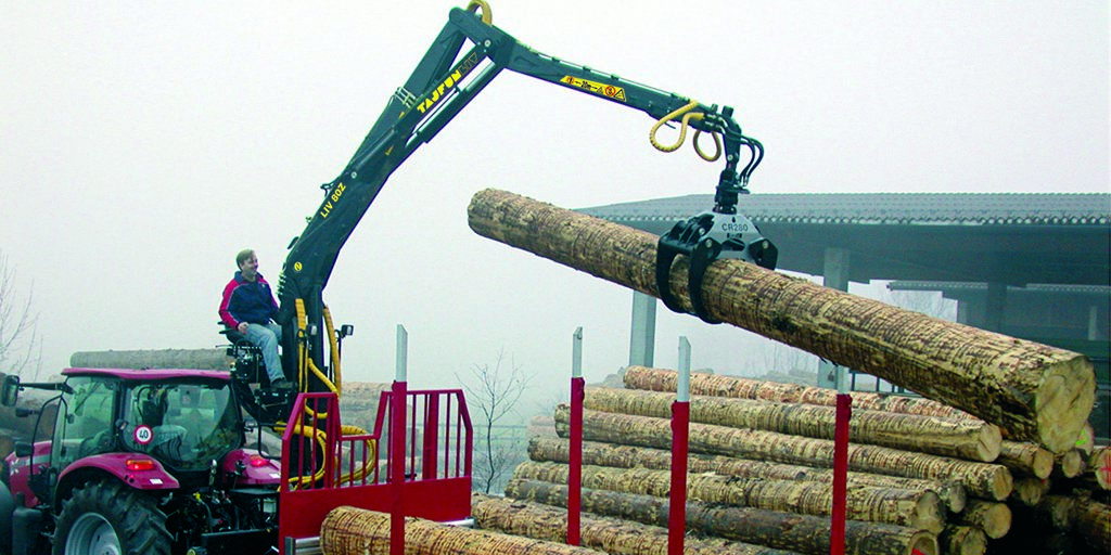 Příčně skládané jeřáby zabírají minimální montážní prostor v přepravní poloze a vyznačují se vynikajícími pracovními vlastnostmi. Pro překládání krátkého dřeva byly vyvinuty jeřáby s nosností 80 kNm. Vyrábějí se s dosahem od 7,3 do 8,5 m s jednoduchým nebo dvojitým teleskopem. Ačkoli byly tyto jeřáby navrženy pro překládání dřeva, stále častěji se používají také pro překládání odpadních materiálů.