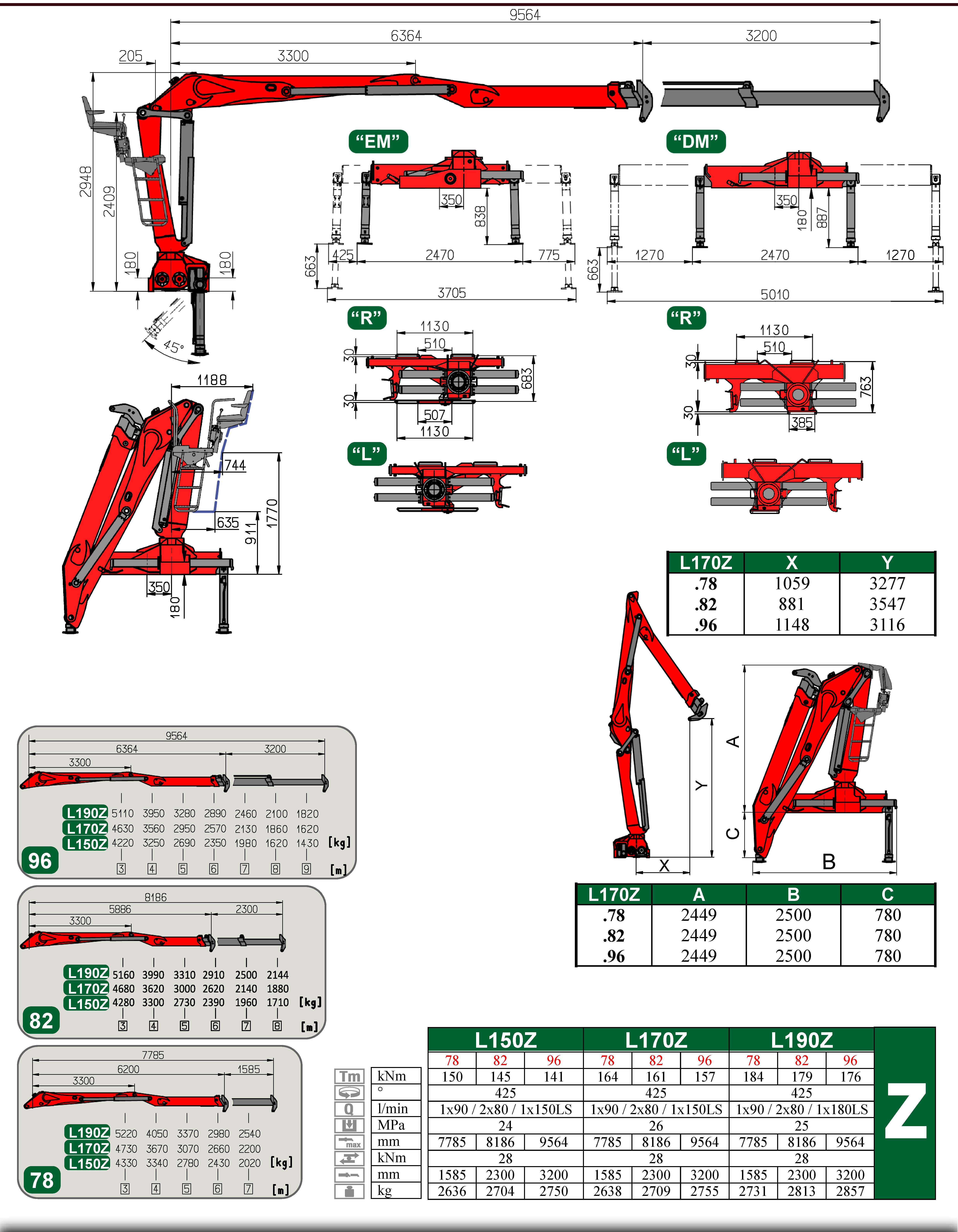 Jeřáby typu „Z“ jsou v posledních letech bestsellery. Příčně skládané jeřáby neboli jeřáby typu „Z“ zabírají v přepravní poloze nejméně montážního prostoru a vyznačují se vynikajícími pracovními vlastnostmi. Pohonný spoj na hlavním rameni zajišťuje dobrou charakteristiku zdvihu v celém pracovním rozsahu. Tyto jeřáby se od ostatních modelů „Z“ odlišují novou generací systémů ramen s vnitřními hadicemi a dvojitým vysunutím ramen až na 5,5 m, což zajišťuje nejlepší stabilitu ze všech jeřábů dostupných na trhu. Jeřáby byly vyvinuty pro nakládání krátkého dřeva a řeziva. Vyrábějí se s dosahem od 7,8 do 9,6 m a nosností od 108 do 276 kNm, s jednoduchým nebo současně vysouvaným dvojitým teleskopickým ramenem. Ačkoli byly jeřáby navrženy pro nakládání dřeva, stále častěji se používají pro přepravu odpadních materiálů.