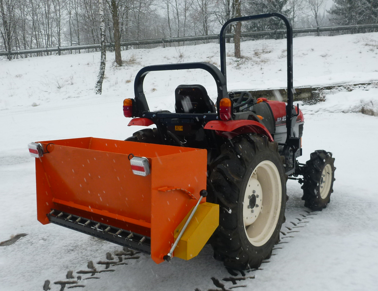 Komunální sypač určen pro posyp chodníku. čepy kat. 1 + 2 rychlospojky, velmi nenáročný stroj, možnost nastavení dávky posypu + plynulá regulace otáček hydromotoru.