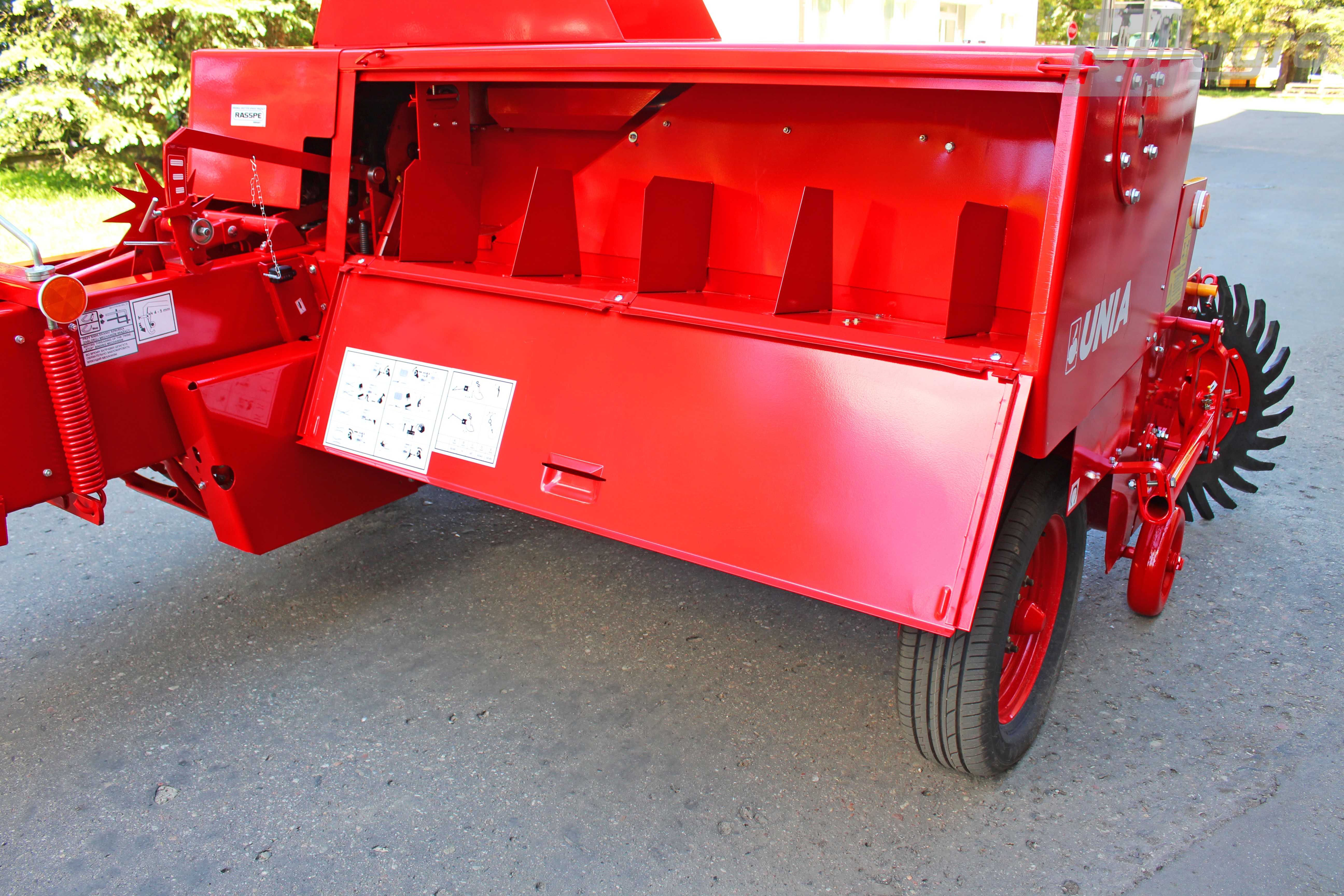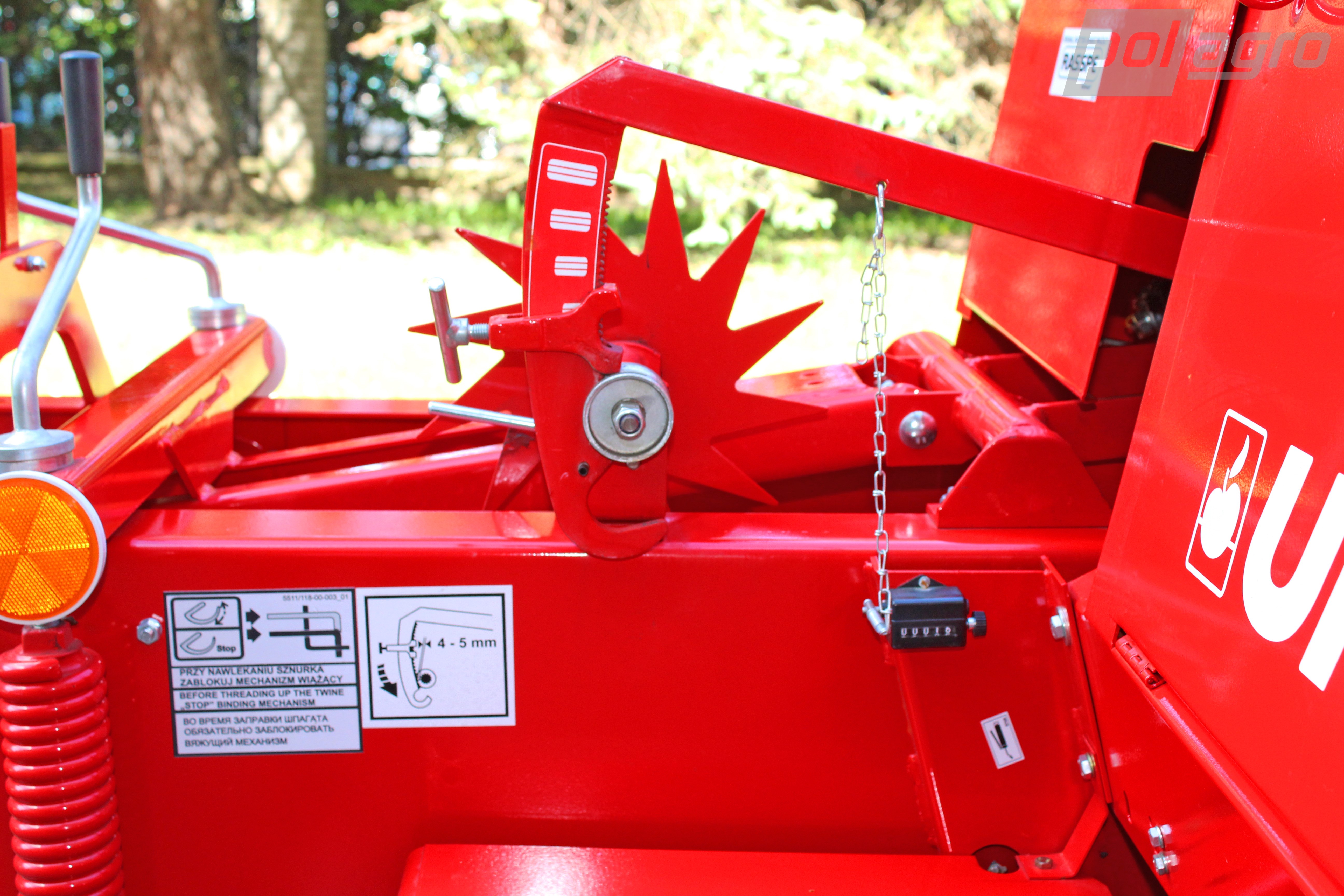 Šířka a výška lisovací komory je konstantní (46 x 36 cm), délku balíků je možno nastavit (30 - 130 cm). Vyvážený klikový mechanismus eliminuje nepříznivé kmity pro traktor a řidiče. Zvedání a spouštění sběrače je mechanické (lankem) za příplatek hydraulické. Po namontování zadního vedení se závěsem je možno balíky nakládat na připojený přepravník. Lis je vybaven počítadlem balíků a hvězdicovým nahrnovačem.