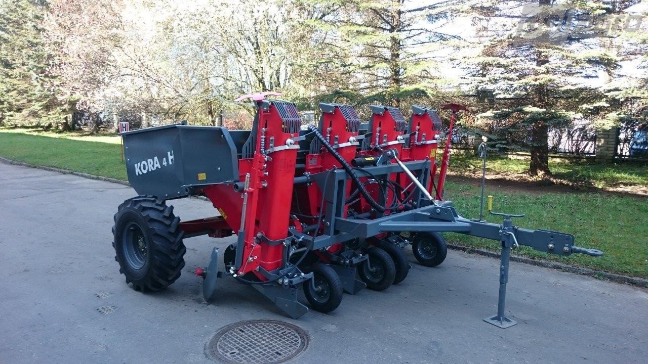 Čtyřřádkový sazeč brambor s miskovým sázecím ústrojím.Za pomoci speciálních vložek je možno sadit předklíčenou sadbu velkou nebo malou.