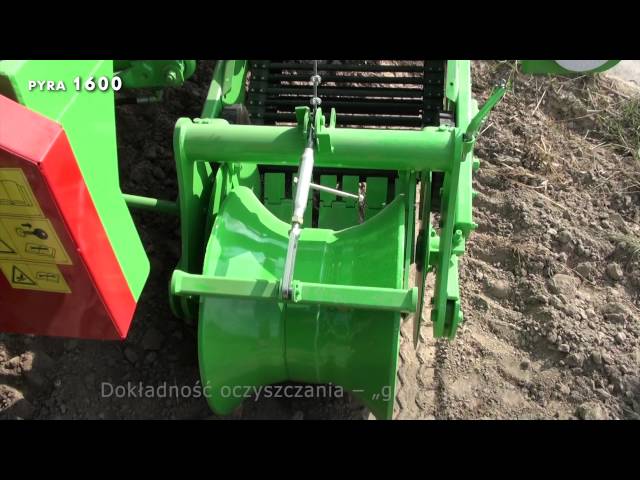 Kombajn pro sklizeň brambor PYRA 1600 se zásobníkem je jednořádkový kombajn určený pro sklizeň brambor a po výměně adaptérů pro sklizeň mrkve a cibule. Brambory ze zásobníku jsou vyprazdňovány na přívěs.