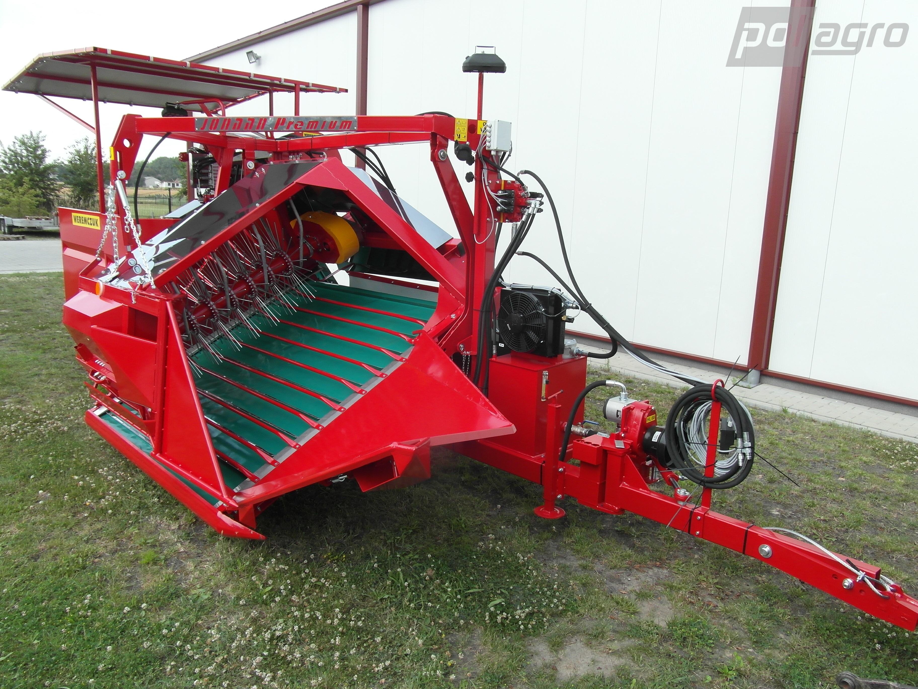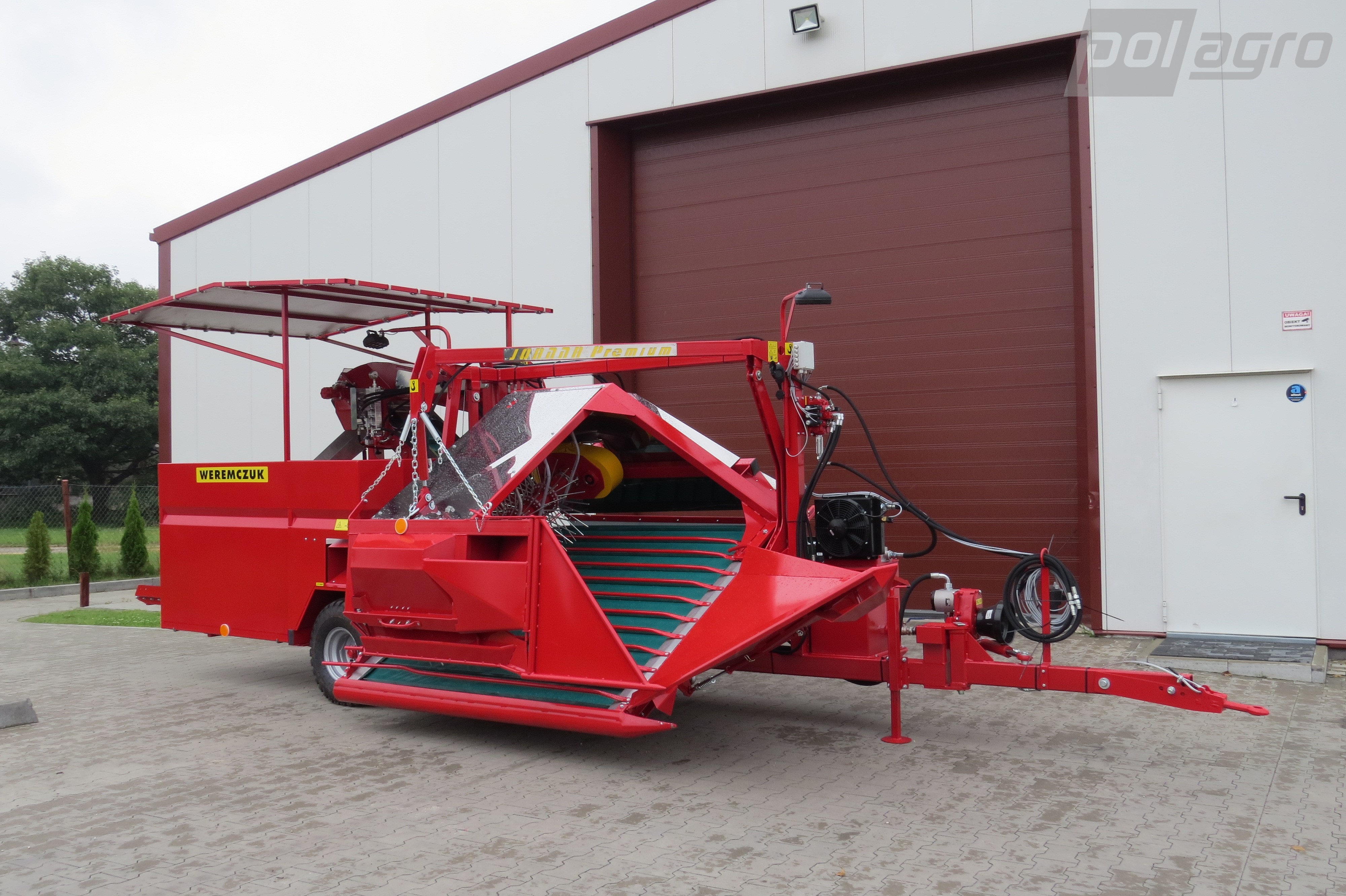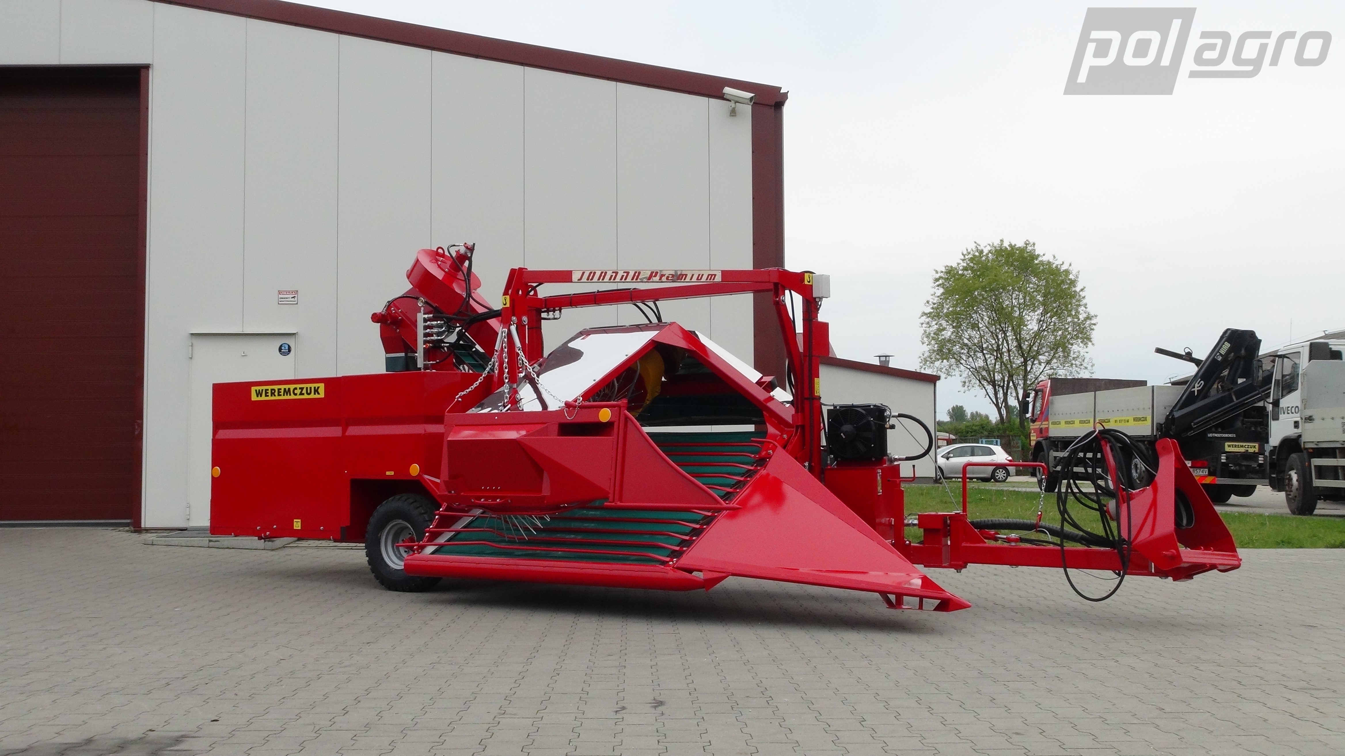 Kombajn pro sběr bobulovitých plodů JOANNA PREMIUM zaručuje vysoce výkonnou sklizeň plodů při zachování jejich nejlepších kvalitativních parametrů. Tento stroj, podobně jako ostatní kombajny na rybíz značky WEREMCZUK, je určen pro sběr plodů z plantáží upravených pro mechanickou sklizeň. Pevná konstrukce zařízení a nejvyšší kvalita materiálů použitých k jeho výrobě umožňují spolehlivý a dlouholetý provoz. Pro plnou obsluhu kombajnu jsou potřeba pouze dvě osoby: obsluha traktoru a obsluha kombajnu, která se nachází na plošině. Minimalizace obslužných činností je jistě velmi velkou výhodou tohoto zařízení. Princip práce kombajnu na bobulovité plody je založen na otřásání plodů z keřů pomocí otřásacích tyčí (tzv. "sluníček"). Důležitým aspektem je možnost regulace amplitudy vibrací v otřásací hlavě, díky čemuž je možné přesněji přizpůsobit parametry práce kombajnu druhu plodiny. Rozhýbané otřásací tyče způsobují oddělení plodů, které následně padají na dopravník. Plody jsou následně očištěny a směřovány do beden či kontejneru umístěného pod sypem.