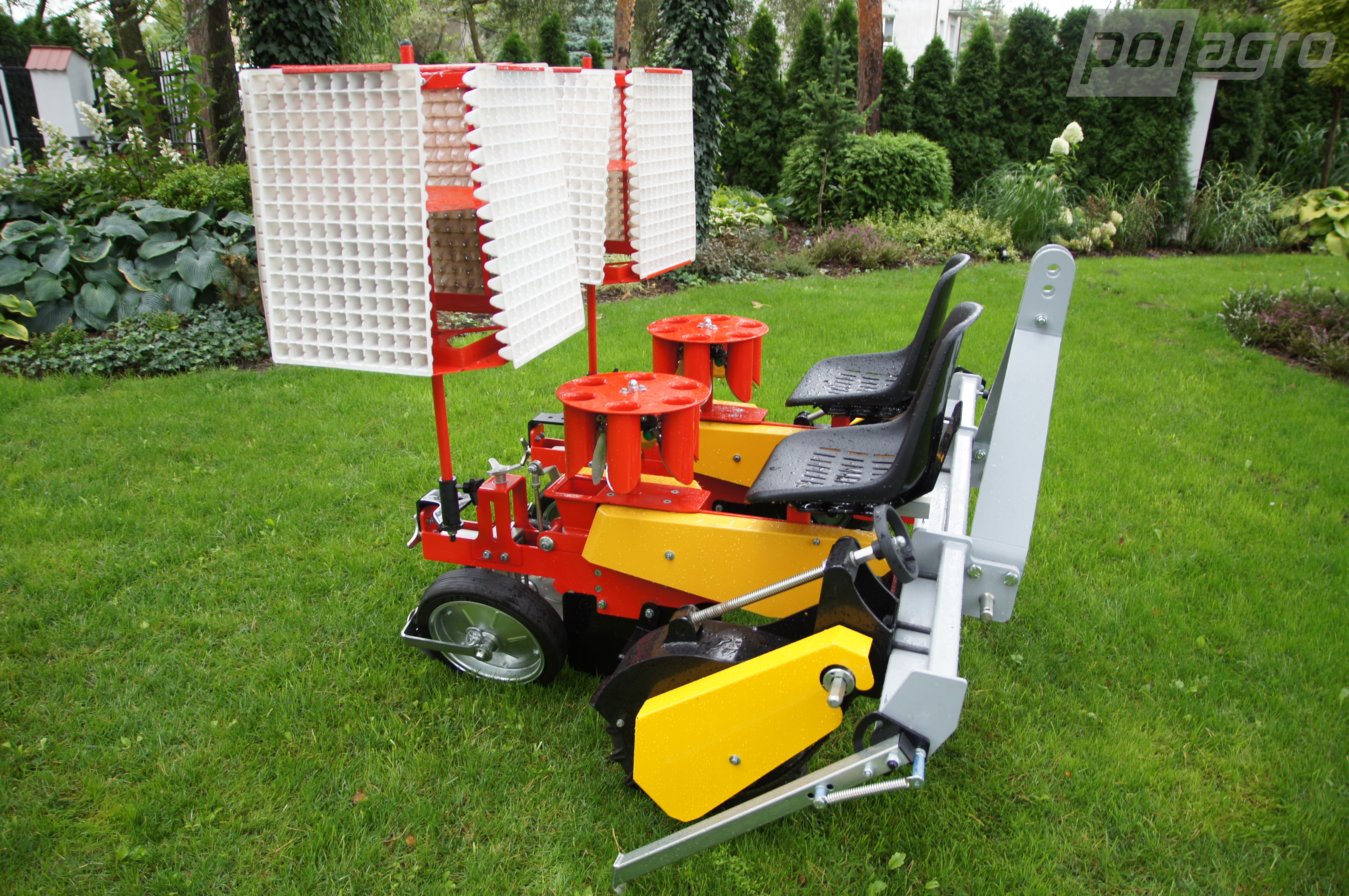 - Standardně vybaven rozdělovačem, skládajícím se ze 6 kovových kelímků, umožňujícím sázení s maximální hustotou 14 cm a minimální roztečí řádků 50 cm (menší na vyžádání)