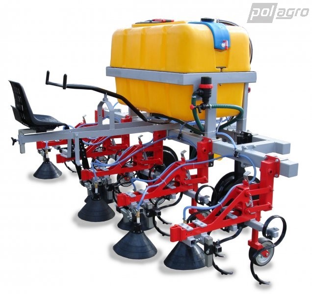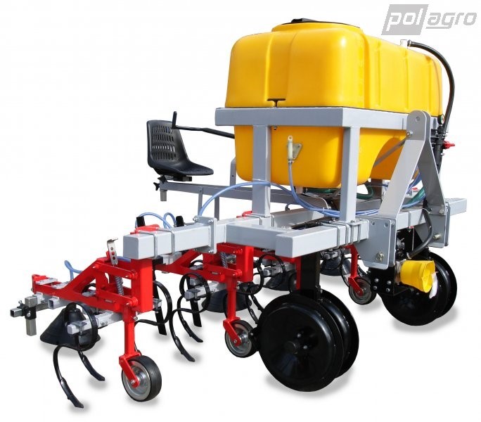 Kultivátor s postřikovačem je určen pro chemické a mechanické ničení plevelů v meziřádkových plodinách nebo dávkování kapalných hnojiv. Speciální kruhové kryty umožňují aplikovat tekuté herbicidy přímo na plevel a chrání takto sazenice rostlin. Navíc umožňuje použití isekticidů pro likvidaci larev brouka v půdě. Chemický prostředek je aplikován pod povrch půdy, na hloubku kde žijí larvy brouka a jiných škůdců (až 25 cm). Pomocí speciálního hloubkového nástroje jsou insekticidy zavedeny do dané hloubky a pokryty vrchní vrstvou půdy, která zabraňuje jejich oxidaci. To poskytuje 100% účinnost. Plečka a postřikovač může sloužit i jako dávkovač tekutých hnojiv. Úpravou trysek lze použít například pro listové hnojení plodin dusíkatým hnojivem, tzv. močoviny. Kultivátor vybavený postřikovačem, stejně jako kultivátor s dávkovači hnojiva, výrazně zlepšuje funkční vlastnosti stroje.