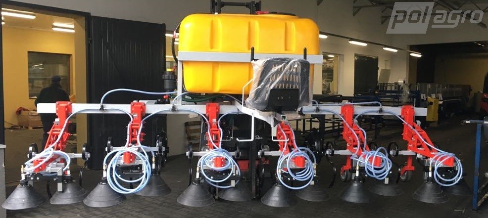 - Standardně každá sekce se 2 gumovými kryty a tryskami na herbicidy
