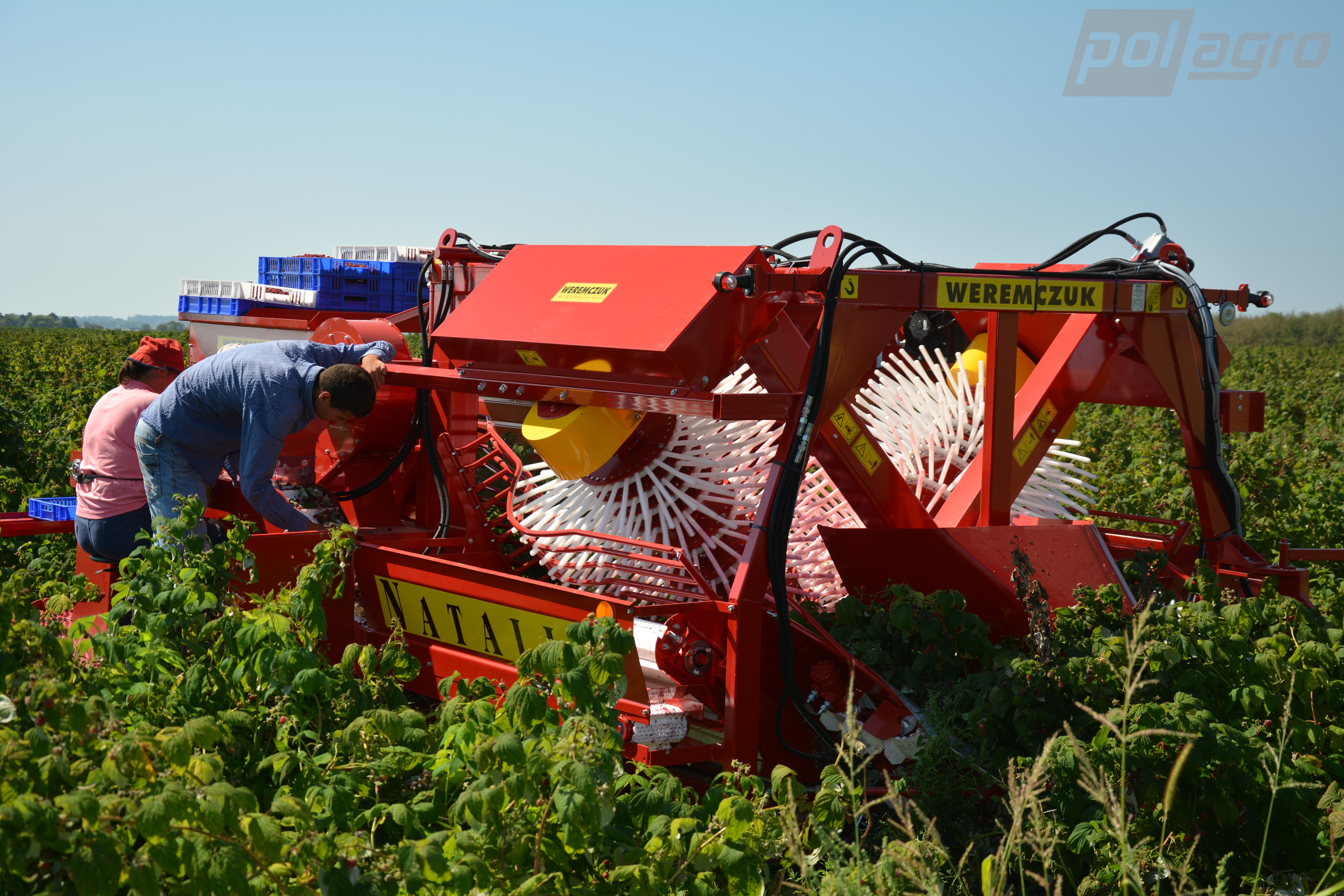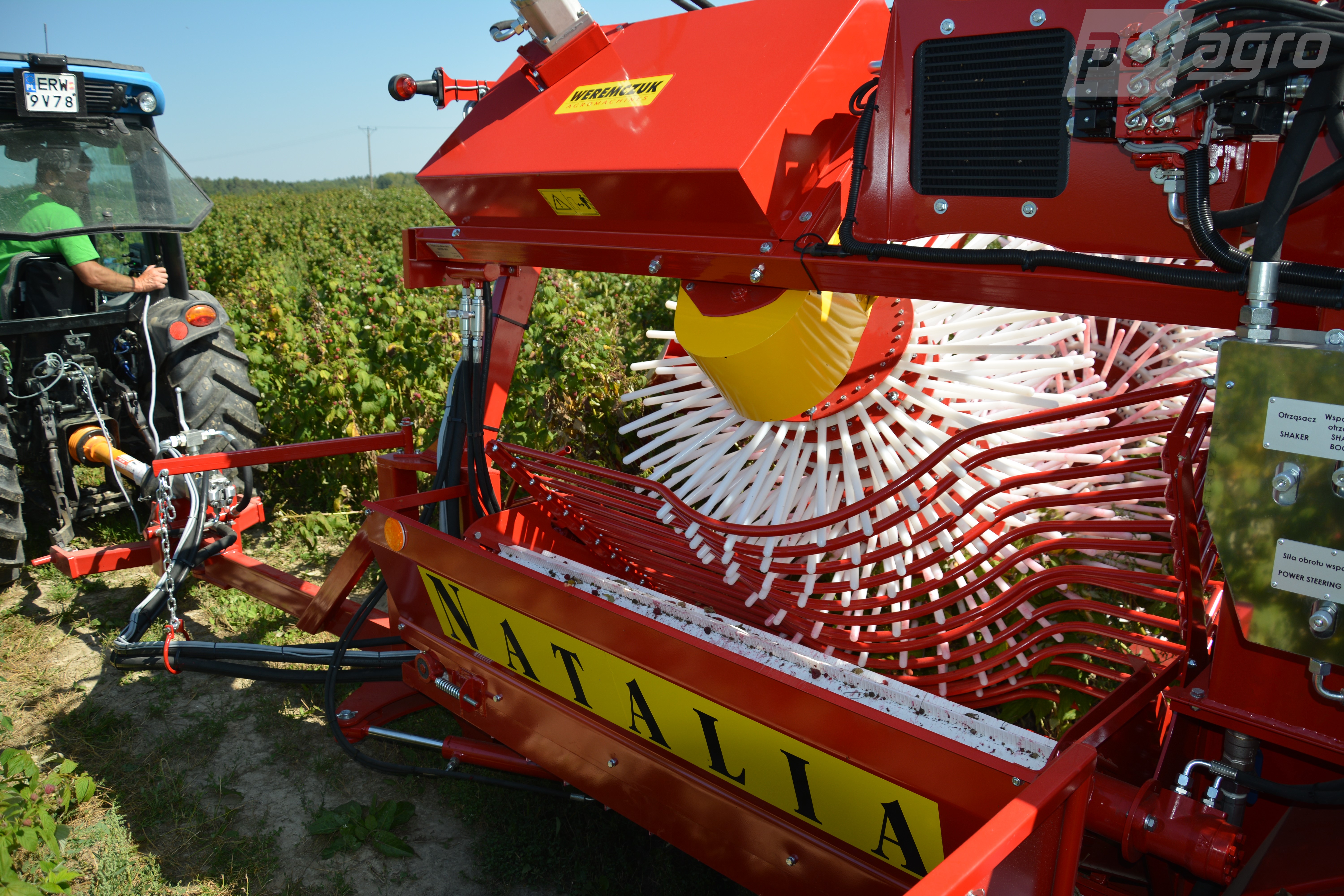NATALIA-V je specializovaný celořádkový kombajn pro sběr podzimních malin pěstovaných bez podpěr. Moderní konstrukční řešení umožňují vícenásobnou, efektivní a kvalitní sklizeň během jedné sezóny. Kombajn se nejlépe uplatní na plantážích o rozloze od 7 do 9 ha. Systém sběru plodů použitý v tomto stroji je založen na páru třesadel uspořádaných proti sobě do tvaru písmene V. Díky použití speciálního rozdělovače je řada keřů rozdělena na dvě poloviny a větvičky malin jsou nakloněny správným směrem. Následně rozhýbané otřásací tyče způsobují oddělování zralých plodů, které padají na dopravníky umístěné pod otřásadly. V další fázi jsou maliny očištěny od drobných nečistot a směřovány do beden. Důležitou výhodou tohoto stroje je možnost neustálého monitorování kvality plodů pracovníky obsluhujícími kombajn. Za zmínku stojí také prostorná pracovní plošina, která umožňuje nepřetržitý provoz stroje bez nutnosti jeho častých prostojů.