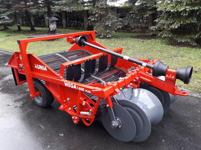 Dvouřádkový vyorávač WEGA 1600 PLUS je určen k vyorávání brambor, zeleniny a cibule.Vyorávač je polozávěsný (tažený) vyorávač určený k vyorávání brambor v obtížných půdních podmínkách. Třídesková radlice je po obou stranách vybavena odřezávacími kotouči a před ní je umístěn kopírovací válec. Standardně je vyorávač WEGA vybaven deskovými (dělenými) radlicemi, určenými pro kopání brambor. Po výměně radlic za vyorávací břit lze vyorávač využít ke sklizni cibule a zeleniny. Jako dodatečné vybavení může být vybaven urovnávacím válcem, který urovnává půdu pod padajícími bramborami či zeleninou, a tím usnadňuje a urychluje jejich sběr. Systém výtřesu - pro účinné očištění a prosévání zeminy jsou v přední části vyorávače namontovány příčně vibrující pruty a v zadní části dopravníku třásadla. V závislosti na podmínkách, ve kterých vyorávač pracuje, je možnost regulace rychlosti vibrací příčných prutů. Má jeden prosévací dopravník, kotoučová krojidla, regulaci vibračního, mechanismu, vytřásač prosévacího pásu, gumová podpůrná kola a zadní sesyp. Vyorávač WEGA 1600 plus je vybaven speciálními tvarovacími deskami pro úzký řádek vykopaných brambor. Polozávěsný vyorávač WEGA 1600 plus je tažen pomocí speciálního závěsu, který je namontován na tříbodovém závěsu traktoru.