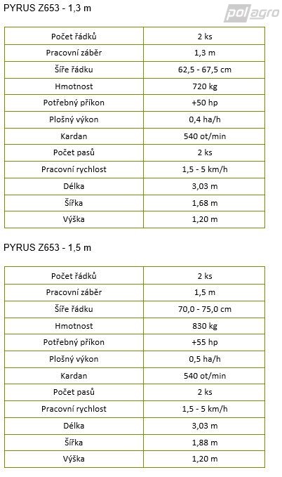 | Šířka řádku | 62,5 - 67,5 / 70 - 75 cm |