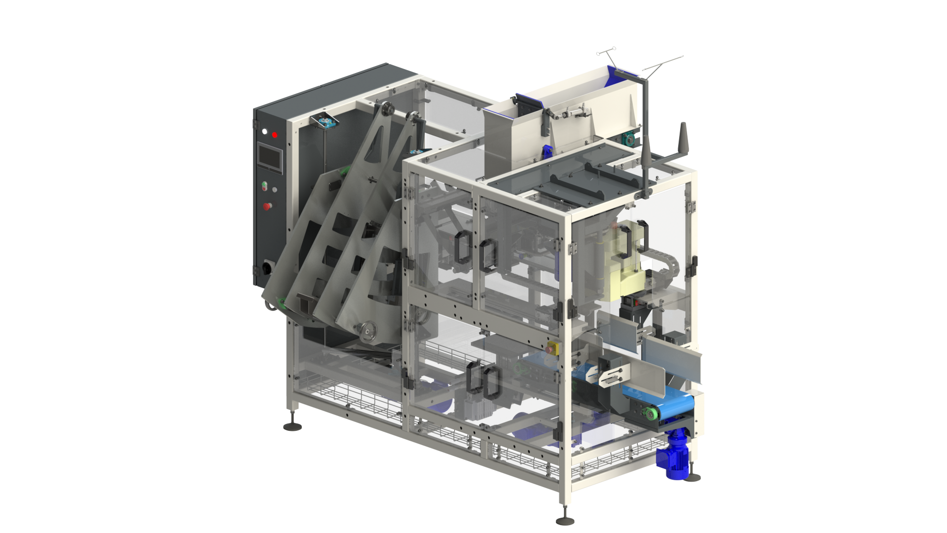 Automatický papírový pytlovač APB je plně automatické zařízení pro balení brambor a další zeleniny do papírových pytlů o hmotnosti od 2 kg do 10 kg. Stroj odebere prázdný papírový pytel z podavače pytlů, přesune ho pod příjmový zásobník, naplní ho zváženou porcí zeleniny a sešije ho. Plodiny padají na dopravník s pásem absorbujícím nárazy. Současně dopravník slouží jako vyrovnávací zásobník pro jednu dávku, což optimalizuje efektivitu zařízení. Senzor umístěný na příjmovém zásobníku reguluje jeho průchodnost, čímž zabraňuje přerušení chodu stroje způsobenému náhodným zablokováním produktů v zásobníku.