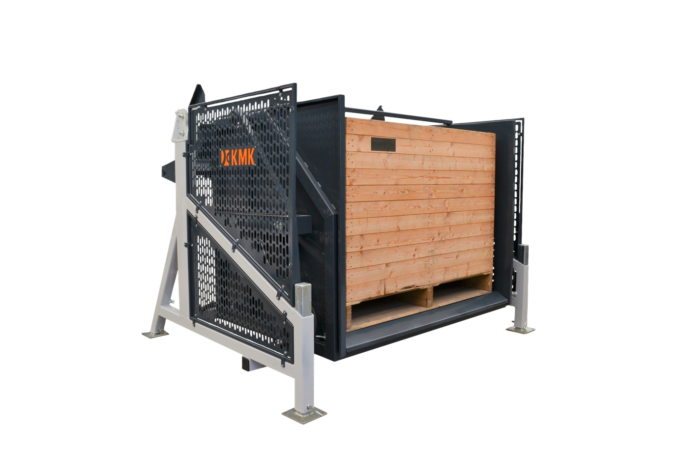 - S přítlakem bedny (With box pressure): Vyklápěč může plnit přímo na plochý dopravník. V této variantě provedení, díky prvkům dodatečného vybavení (hydraulicky ovládaný kryt bedny a ovládací panel umožňující parametrizaci), může vyklápěč fungovat jako dávkovač