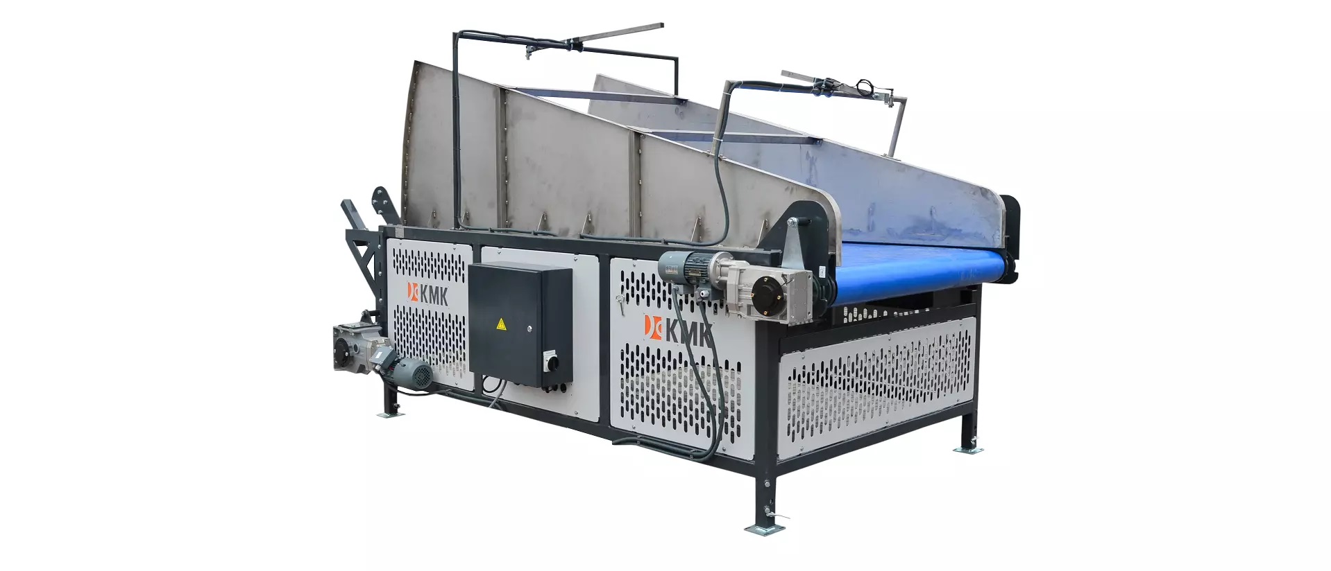 Přijímací vyrovnávací dopravník EF je zařízení určené pro vyrovnávání a přesné dávkování produktu v kritických bodech technologických linek, zejména pro podávání vícehlavých vah, které vyžadují rovnoměrný přísun produktu. EF je vybaven pohyblivým dopravníkem s PVC pásem, který v případě přetoku produktu sjede dolů a vytvoří vyrovnávací prostor. Díky použitému mechanismu a senzorovému řídicímu systému může zařízení dynamicky reagovat na náhlý přetok produktu, způsobený buď neschopností následujícího stroje v lince produkt přijmout, nebo rychlejším podáváním předchozích strojů. Získaná funkcionalita zajišťuje rovnoměrný a stabilní tok produktu mezi stroji v lince. Standardní rychlost pásu je řízena invertorem. Volitelně může být stroj vybaven pokročilým systémem řízení dávkování, který se skládá z dodatečného senzoru produktu a programovatelného PLC řídicího systému, který neustále kontroluje rychlost pásu, aby udržel co nejstabilnější úroveň dávkování.
