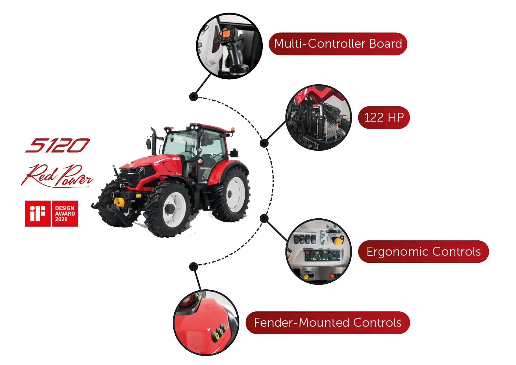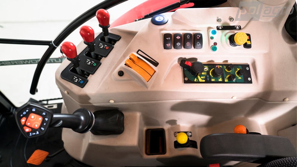 - Hydraulický systém: Traktor je vybaven výkonným hydraulickým systémem s nosností zadního zvedáku 5 500 kg, průtokem 80 l/min a tlakem až 200 barů, tři šoupatkové ventily externí hydrauliky (6 rychlospojky), které umožňují připojení širokého spektra zemědělských nástrojů a zařízení