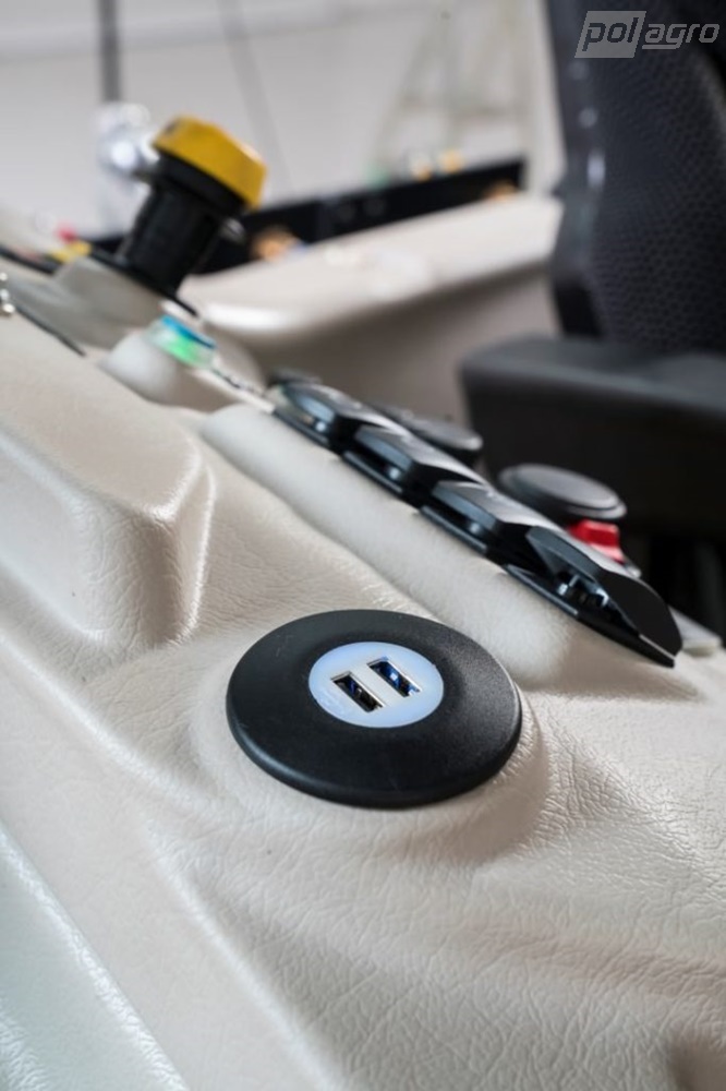 - Kabina: Kabina chráněná uhlikovým filtrem, klimatizace, rádio, sedadlo asistenta. Ovládací prvky jsou ergonomicky uspořádány