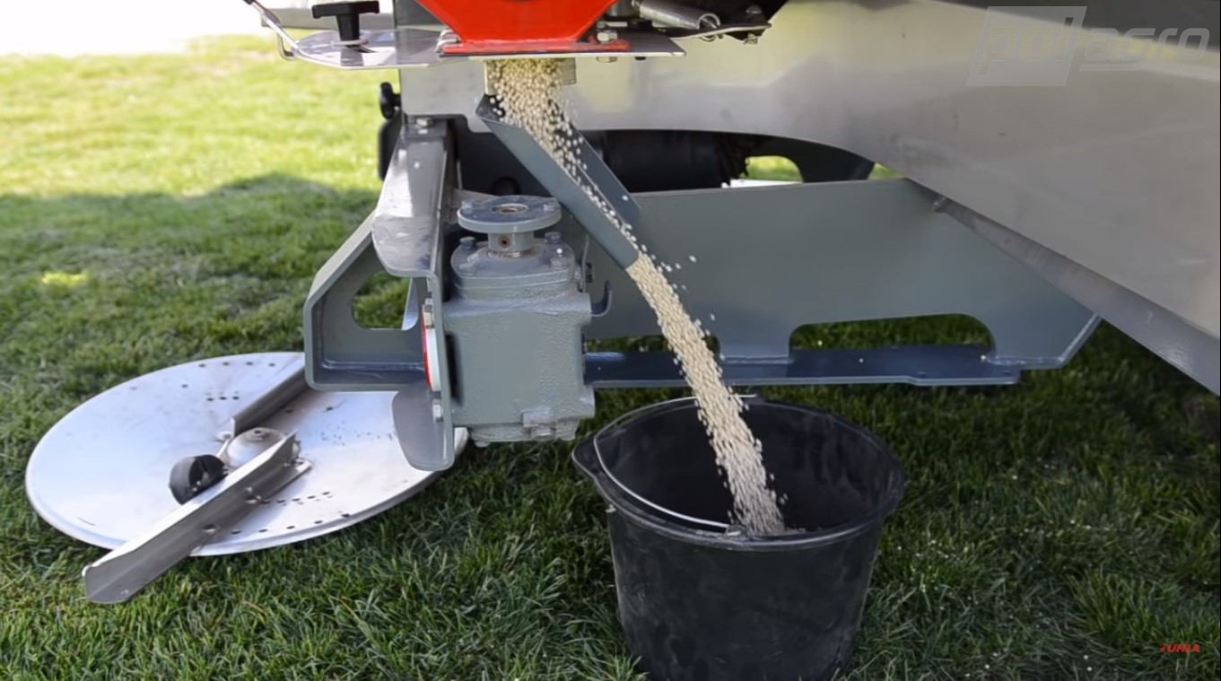- lLimitér pro ohraničený rozhoz granulovaných hnojiv skládaný hydraulicky (s pomocí počítače) odnímatelné transportní kola