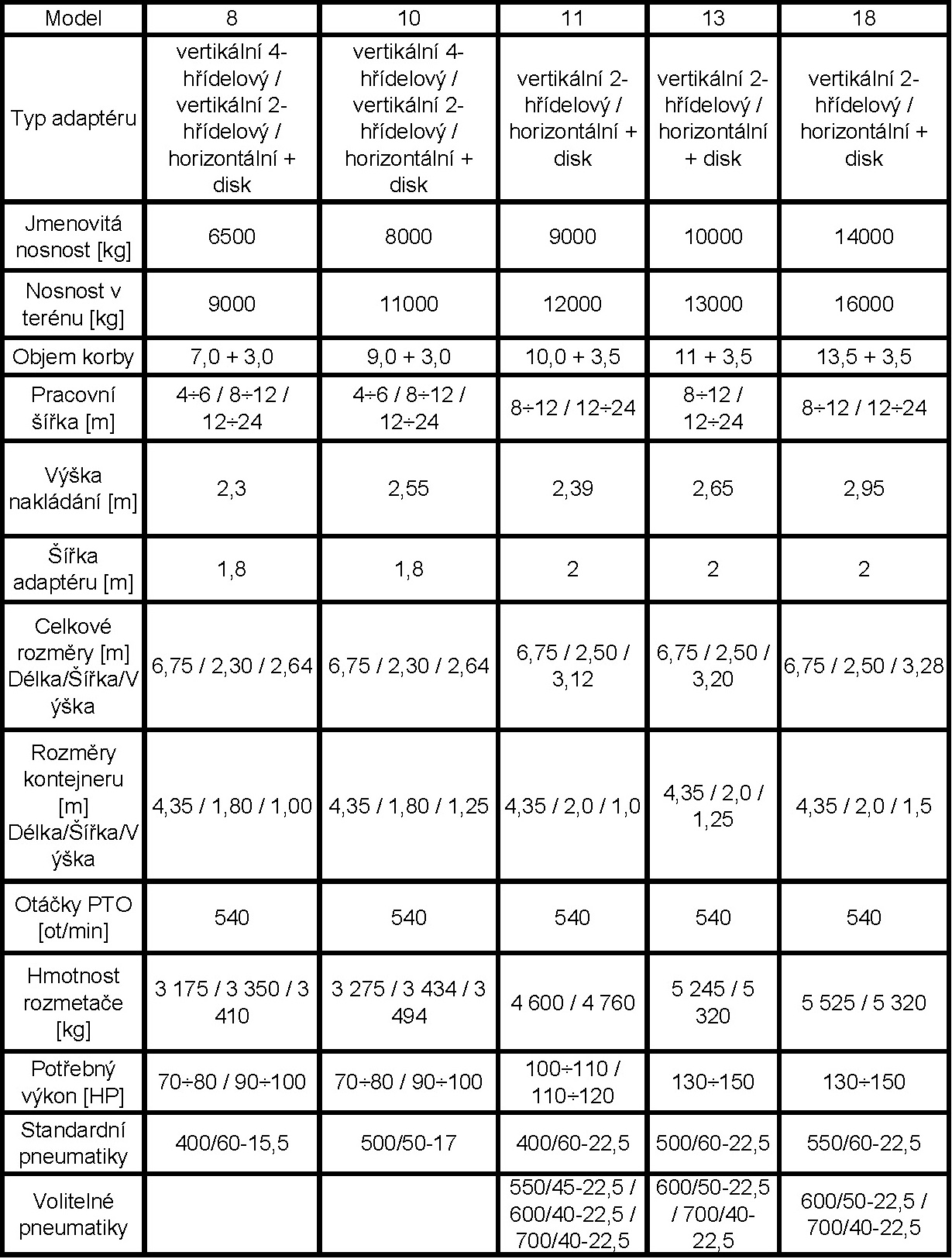 | Polní nosnost | 13 000 kg |