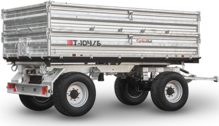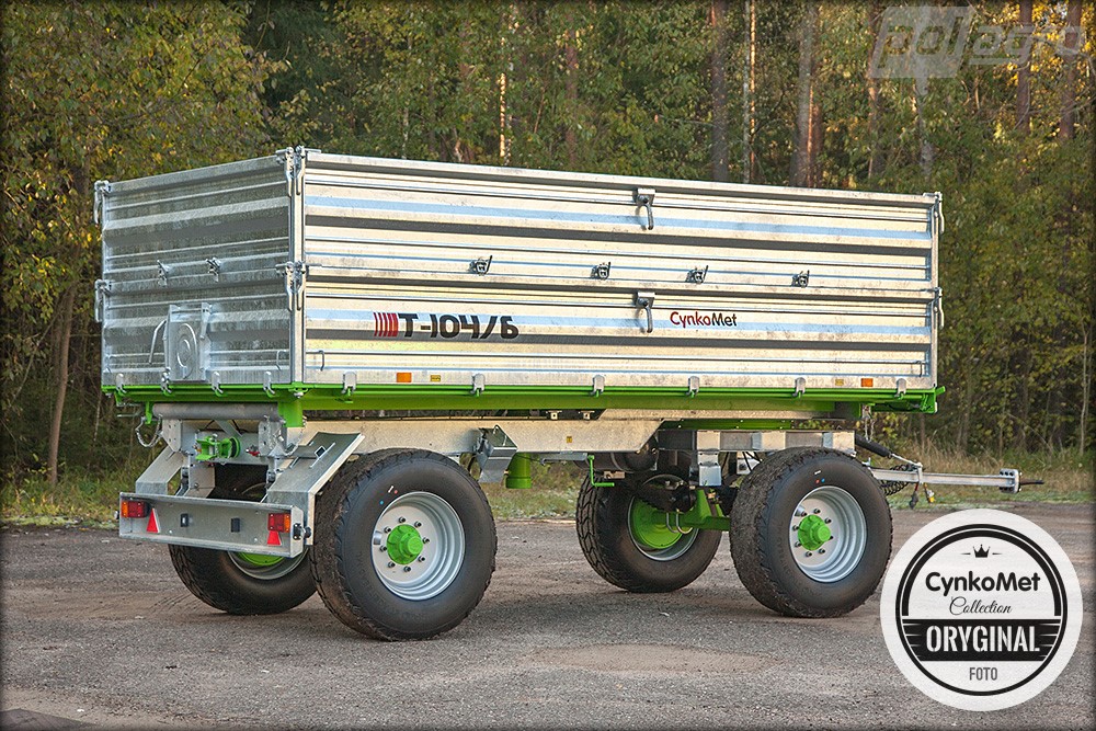 Traktorový přívěs CYNKOMET T 104/6 má třístranně sklopnou korbu. Přívěs má nosnost 10 tun. Žárově pozinkované bočnice, otočné oje a rám. Podlaha o tloušťce 4 mm je opatřena povrchovým nátěrem. Oj typu "Y" s výměnným okem 40 mm. Centrální jištění bočnic. Zadní bočnice je vybavena výsypným okénkem. Žebřík a vnitřní nášlapy umožňující vstup do korby. Zakládací klíny kol. Kola 385/65 - 22,5. Navíc nabízí bohatou doplňkovou výbavu, která vyhovuje individuálním potřebám každého uživatele.