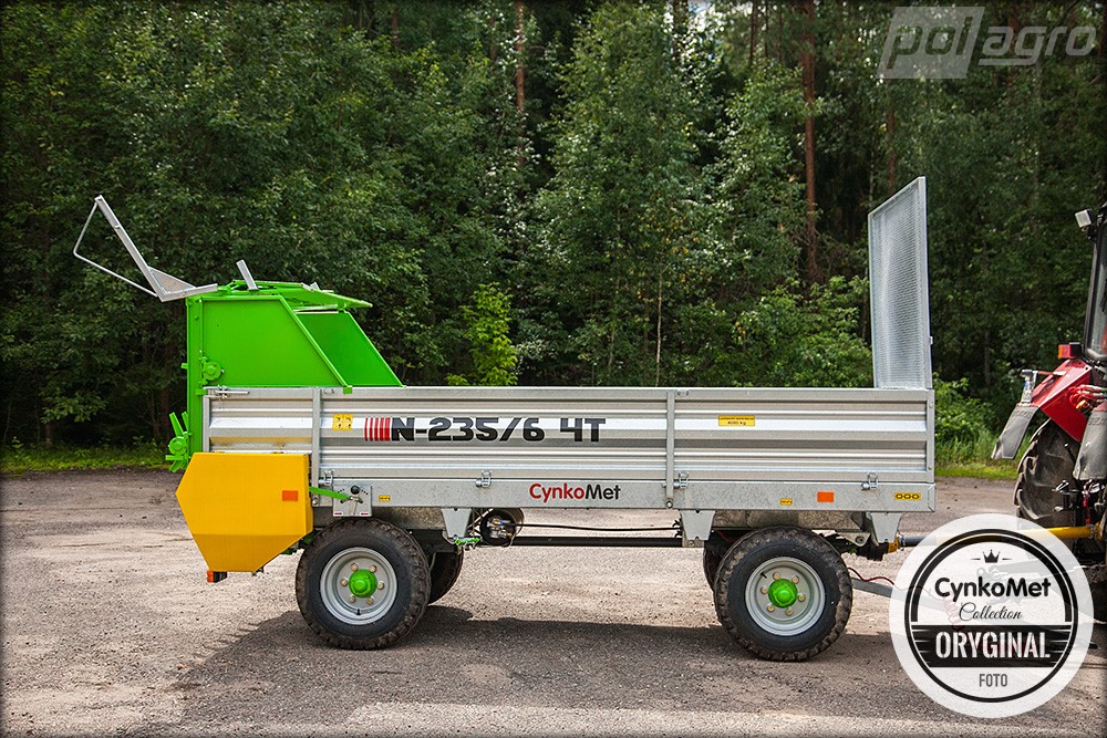 Rozmetadlo Cynkomet N - 235/6 je určeno k rozmetání chlévské mrvy, kompostu, rašeliny a vápna.Konstrukce je žárvě zinkovaná, podlaha má sílu plechu 3mm, což zajišťuje dlouhou bezporuchovou životnost. Pro výrobu komponentů jsou používány vysoce kvalitní materiály což zaručuje vysokou jakost a bezporuchovost. . Rozmetadlo má dvě nápravy na vahadlech nebo odpružené.. Posuv dopravníku je mechanický pomocí 9 stupňové převodovky. Po výměně rozmetacího adaptéru za zadní čelo je možno využít rozmetadlo k přepravě zemědělských materiálů.