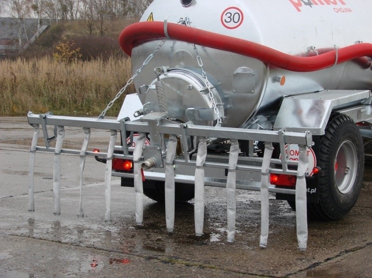 Bezorebný agregát s vlečnými hadicemi s pracovní šířkou 3,0 m.