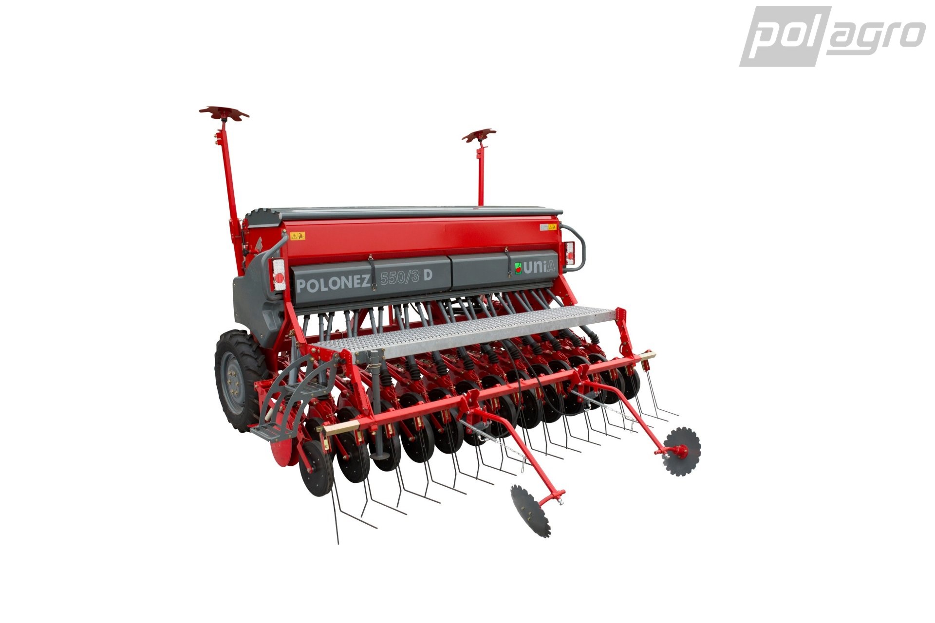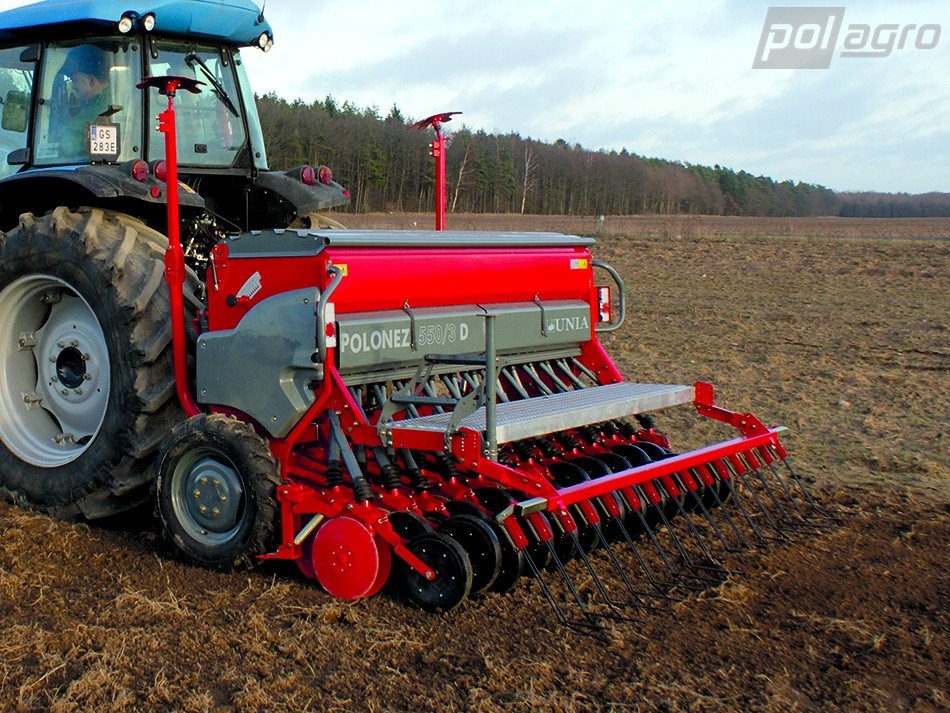 Secí stroj POOLONEZ 550/3D je mechanický secí stroj těžší konstrukce s válečkovým výsevním ústrojím s plynule nastavitelnou rychlostí otáčení a nastavitelnou vzdálenosti dna pod výsevními válečky dle velikosti semen. Výsevní ústrojí na každém řádku je tvořeno válečkem pro výsev jemnozrných plodin a válečkem pro výsev velkých zrn. Díky tomu je secí stroj Poznaniak vhodný k výsevu všech běžných úzkořadých obilovin, olejnin, luskovin a tráv. Secí stroj je vybaven dvoudiskovou secí botkou do "V" Ø 300 mm s přítlakem až 25 kg a zavlačovači. Tyto secí stroje vynikají svou vysokou přesností výsevku, snadnou kontrolou výsevku, jednoduchou obsluhou s minimální nutnou údržbou a konstrukcí umožňující agregaci i s lehčími traktory nižších výkonů. Poznaniaky jsou rovněž vhodné k vytvoření secích kombinací.