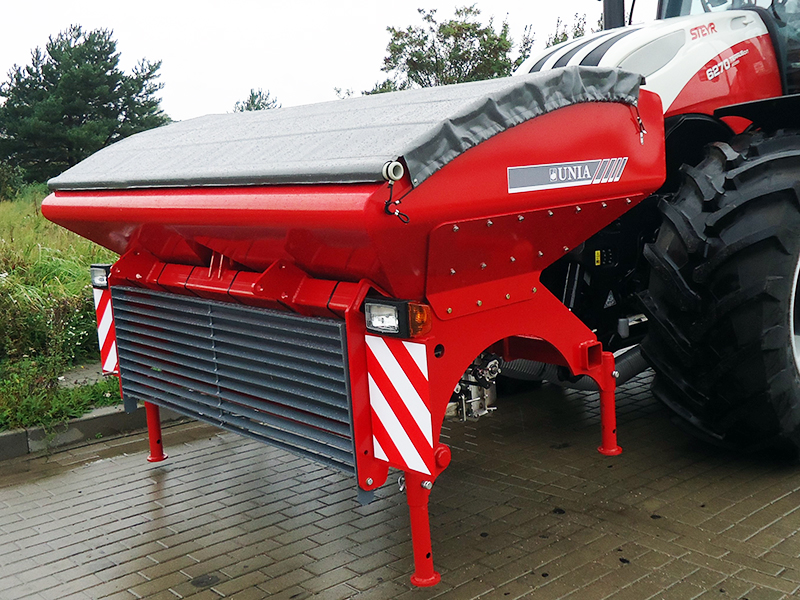 - Čelní secí stroj s pneumatickým secím systémem, který je uchycen na předním tříbodovém závěsu traktoru.
