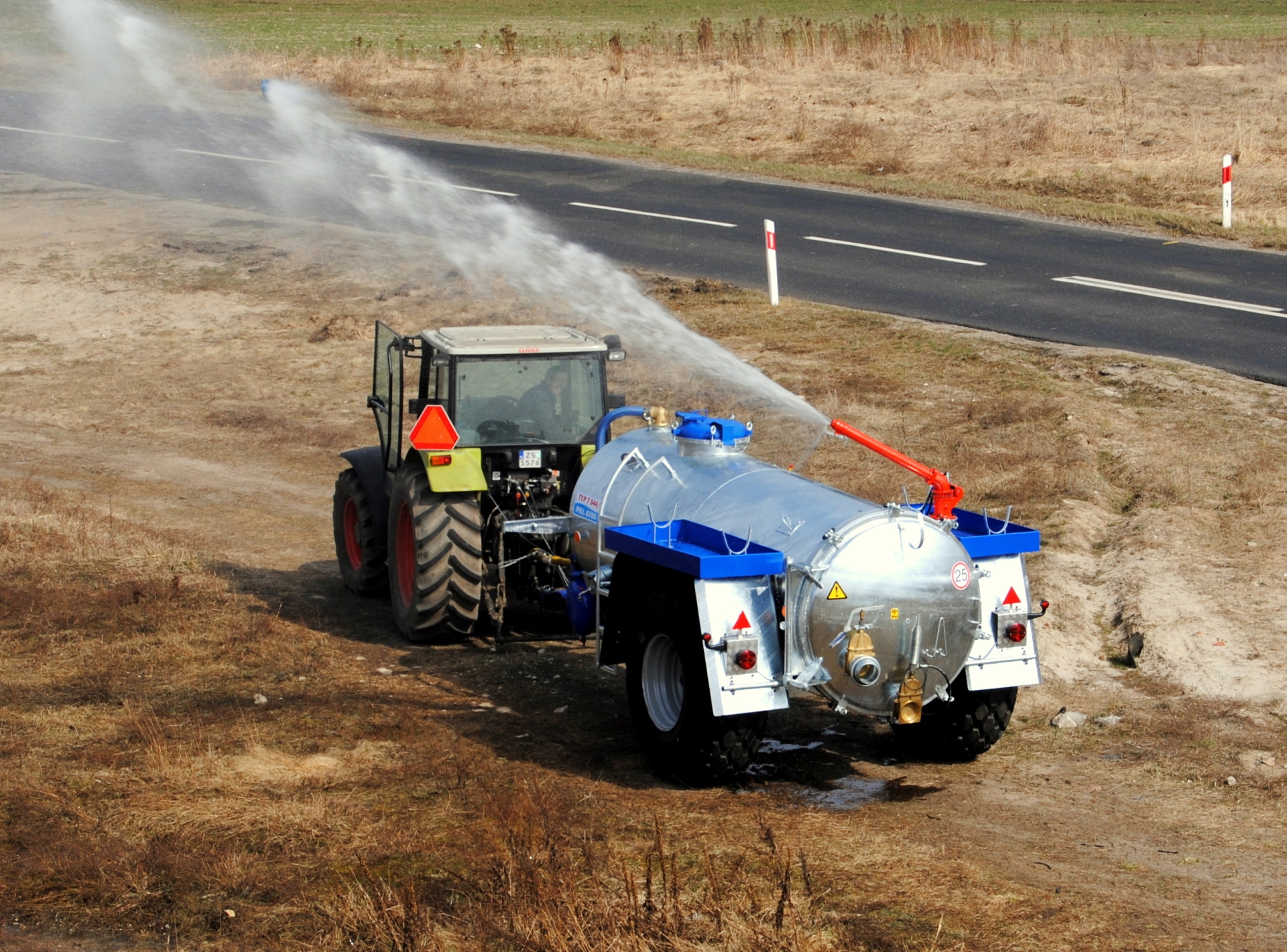 Cisterna značky Pomot ve velikostech 4 000l, 5 000l, 6 700l, 8 000l, 10 000l, s rozstřikovým dělem s dosahem až 50 metrů. Tato sestava se skládá z převodovky, která je mechanicky přepínatelná, pohonu kompresoru a odstředivého čerpadla. Výkon čerpadla je 1600 l/min při pracovním taku 5 barů. Hydraulicky otáčené dělo se dá otočit o 360 stupňů. Na konci děla je regulace šířky vzdálenosti dostřiku. Typ čerpadla MEC.