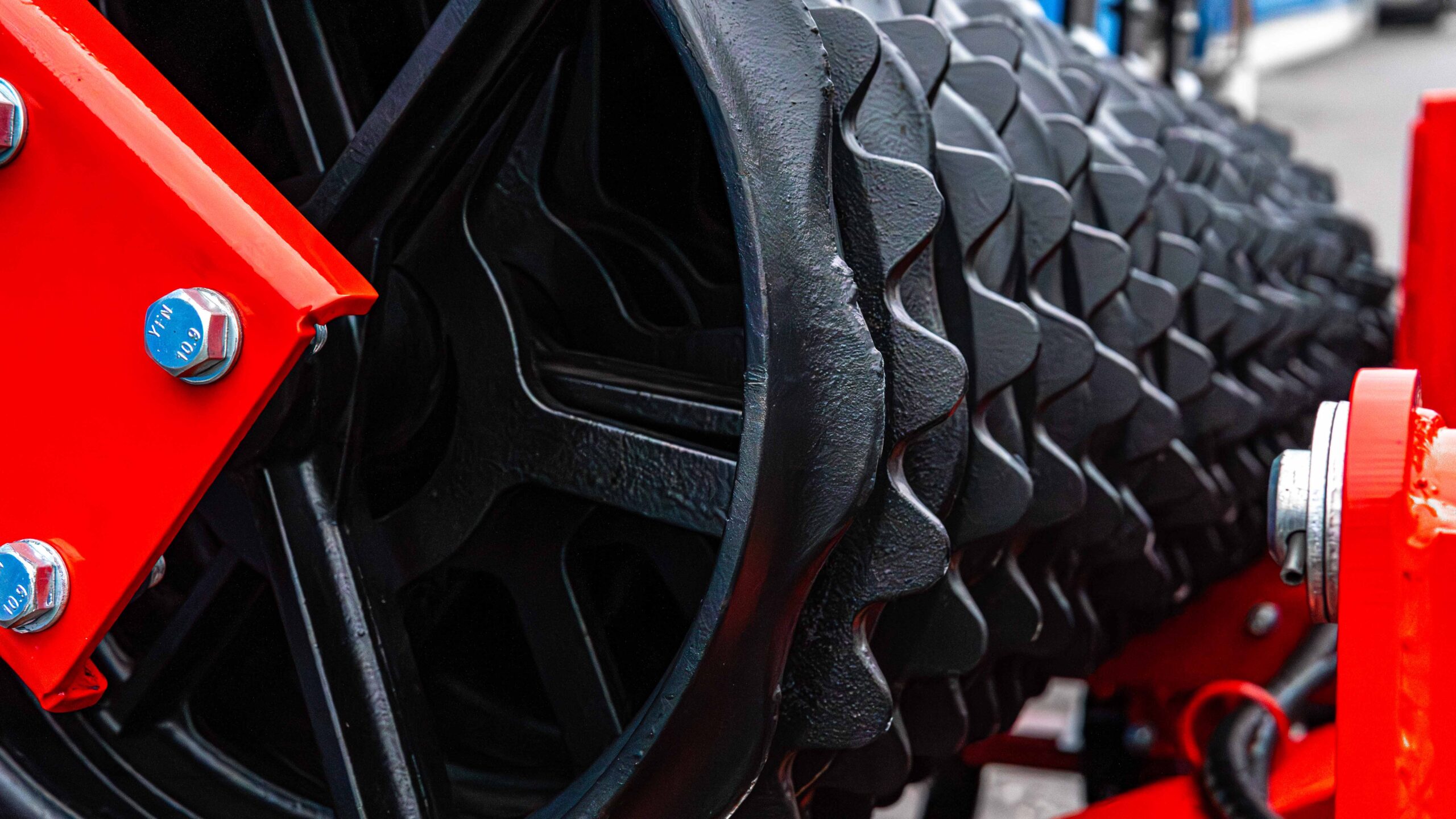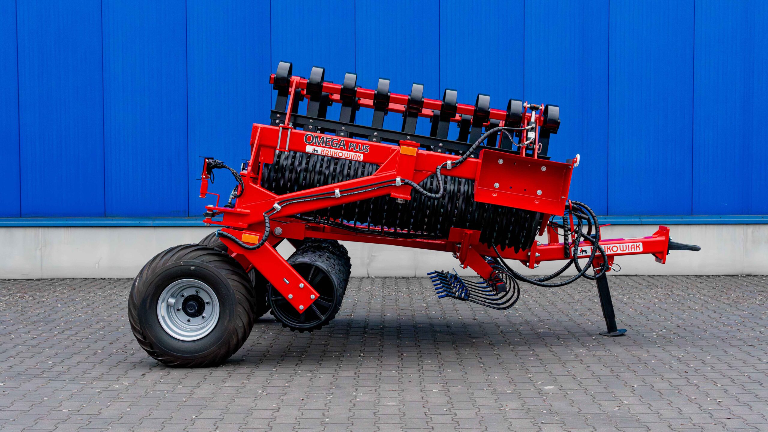 Velkou výhodou válců Omega Plus jsou výkyvná boční pole, která umožňují vynikající přizpůsobení nerovnostem terénu a rovnoměrné rozložení tlaku prstenců na půdu po celé pracovní šířce. Disponují moderním systémem skládání pro přepravu, aniž by bylo nutné přesouvat válec.