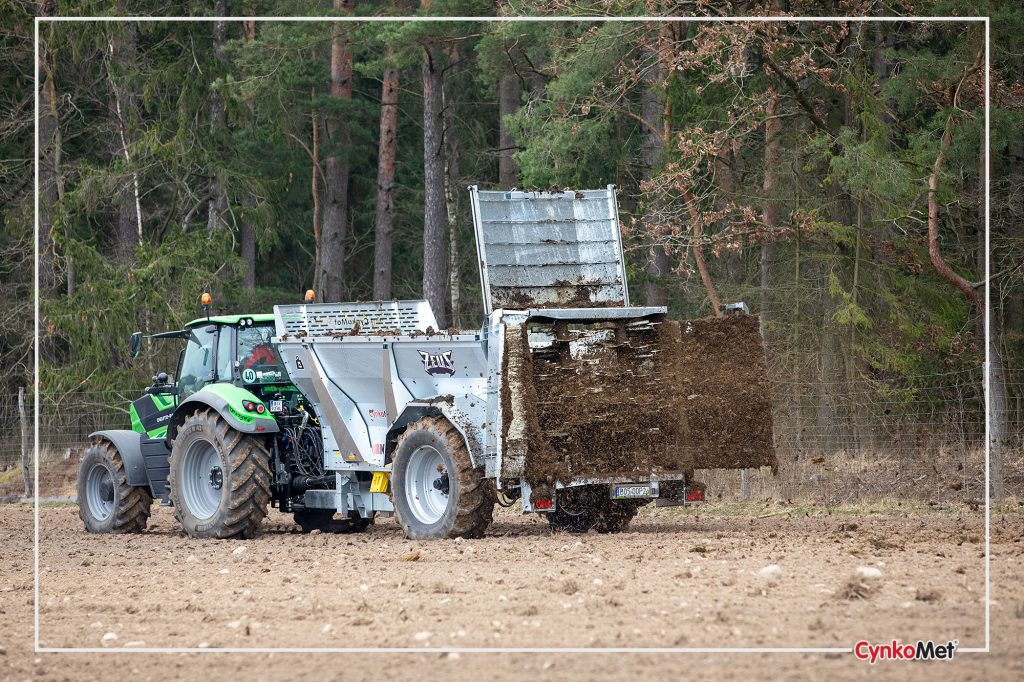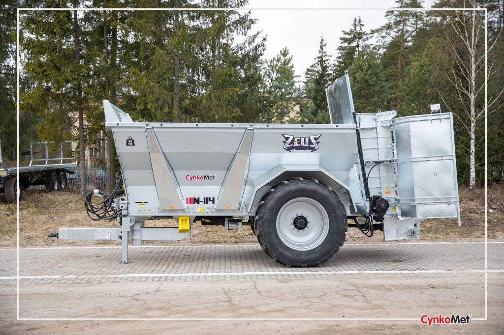 Rozmetadlo chlévské mrvy CYNKOMET N-114 je určené pro širokou škálu hnojiv. Konstrukce rozmetadla je na jedné nápravě s velkými koly pro větší průjezdnost terénem.