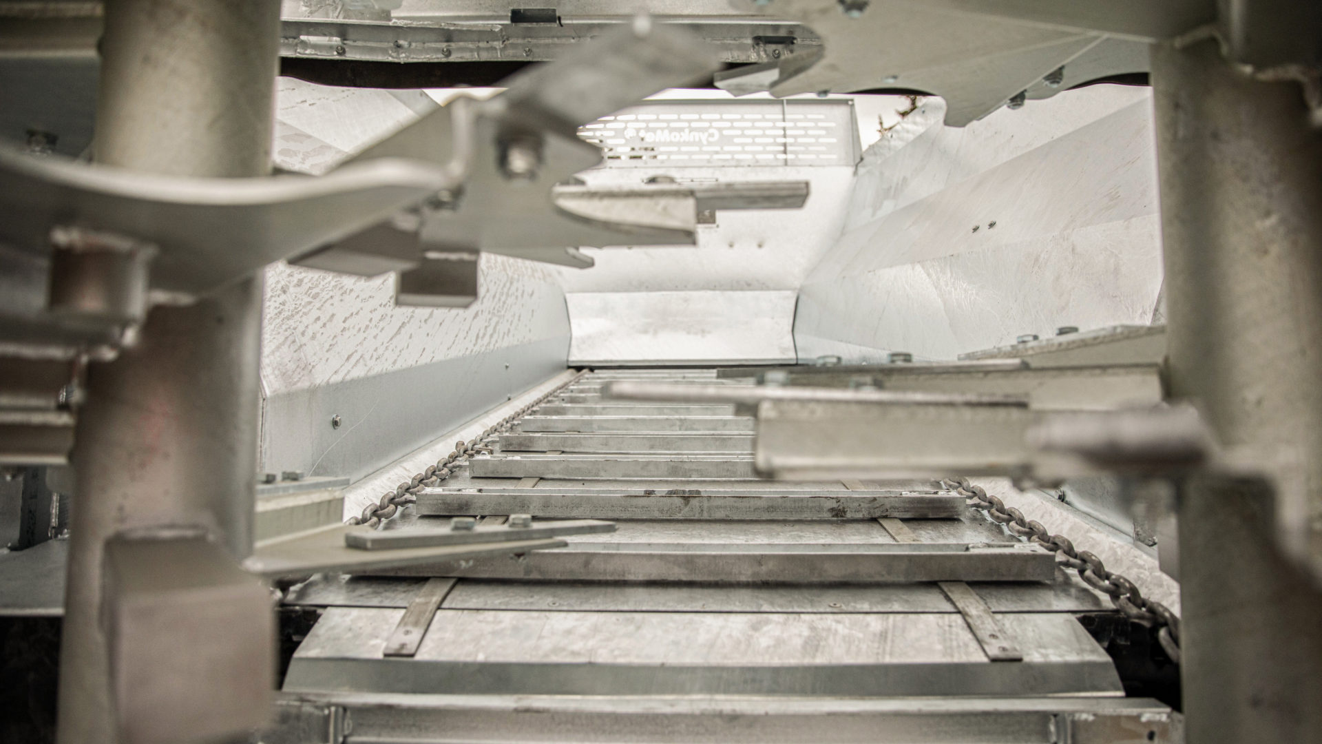 - Podlahový dopravník poháněný vždy dvěma 4 000 Nm každý