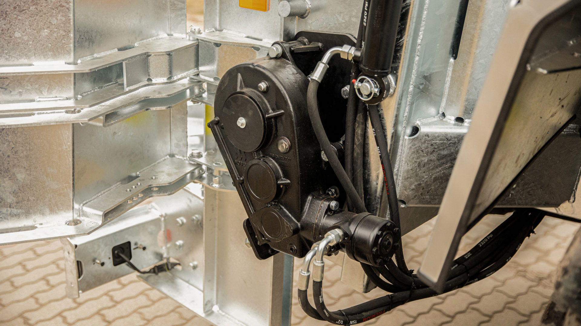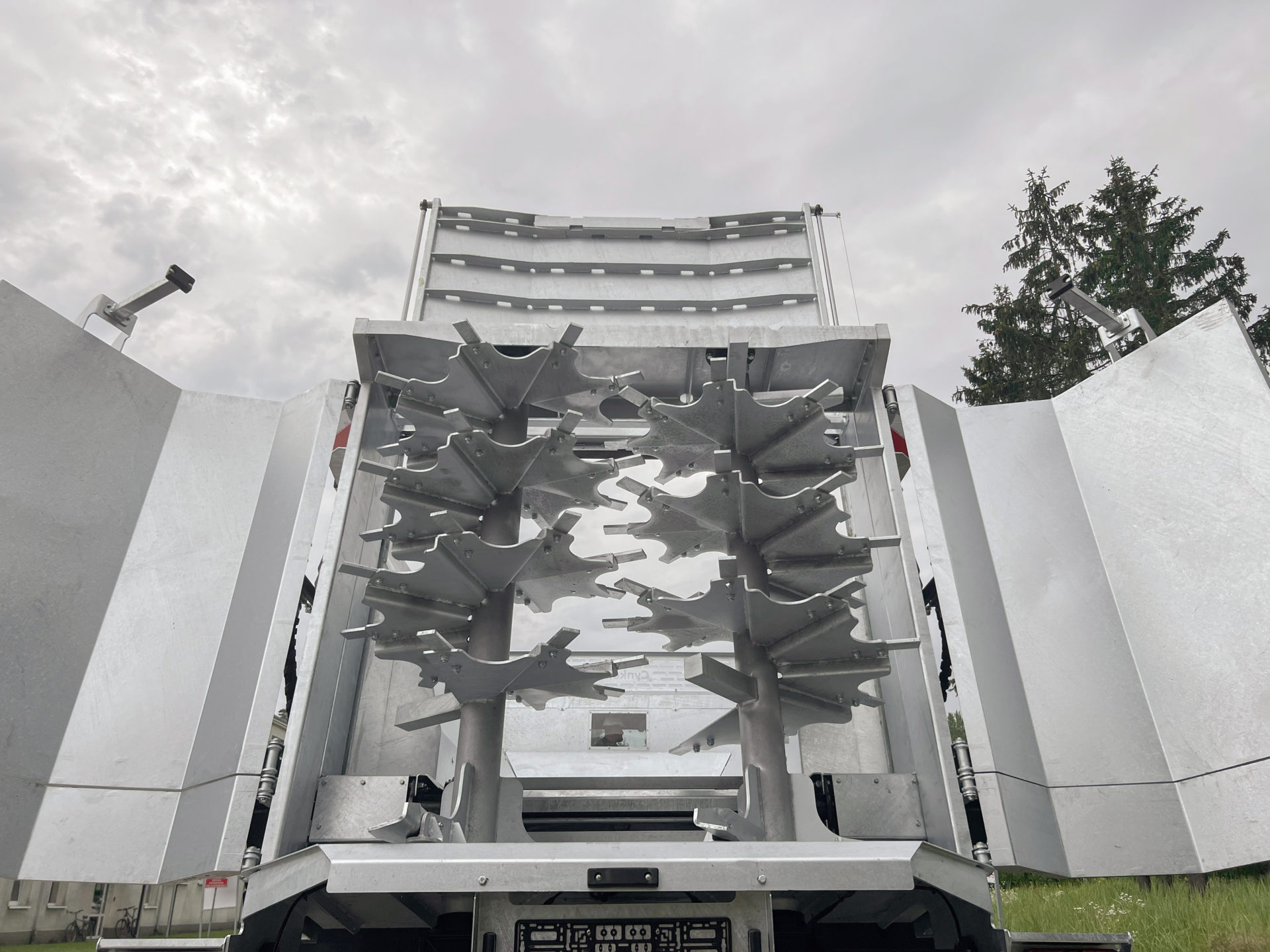 - Žárově pozinkovaná zadní stěna hydraulicky zvedaná dvěma válci se zdvihem 1600