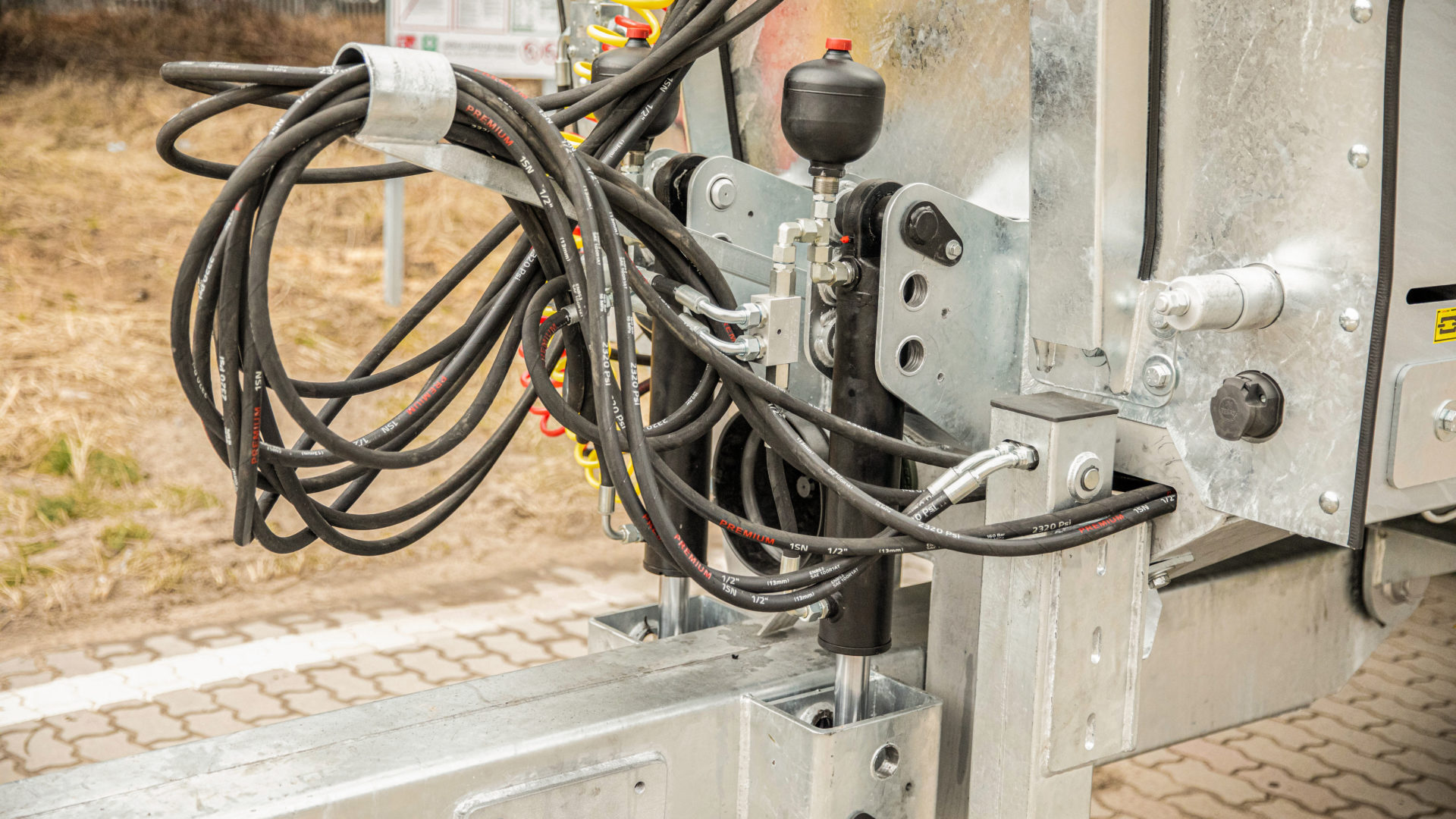 - Hydraulická instalace z pozinkovaných ocelových trubek a pružných hadic