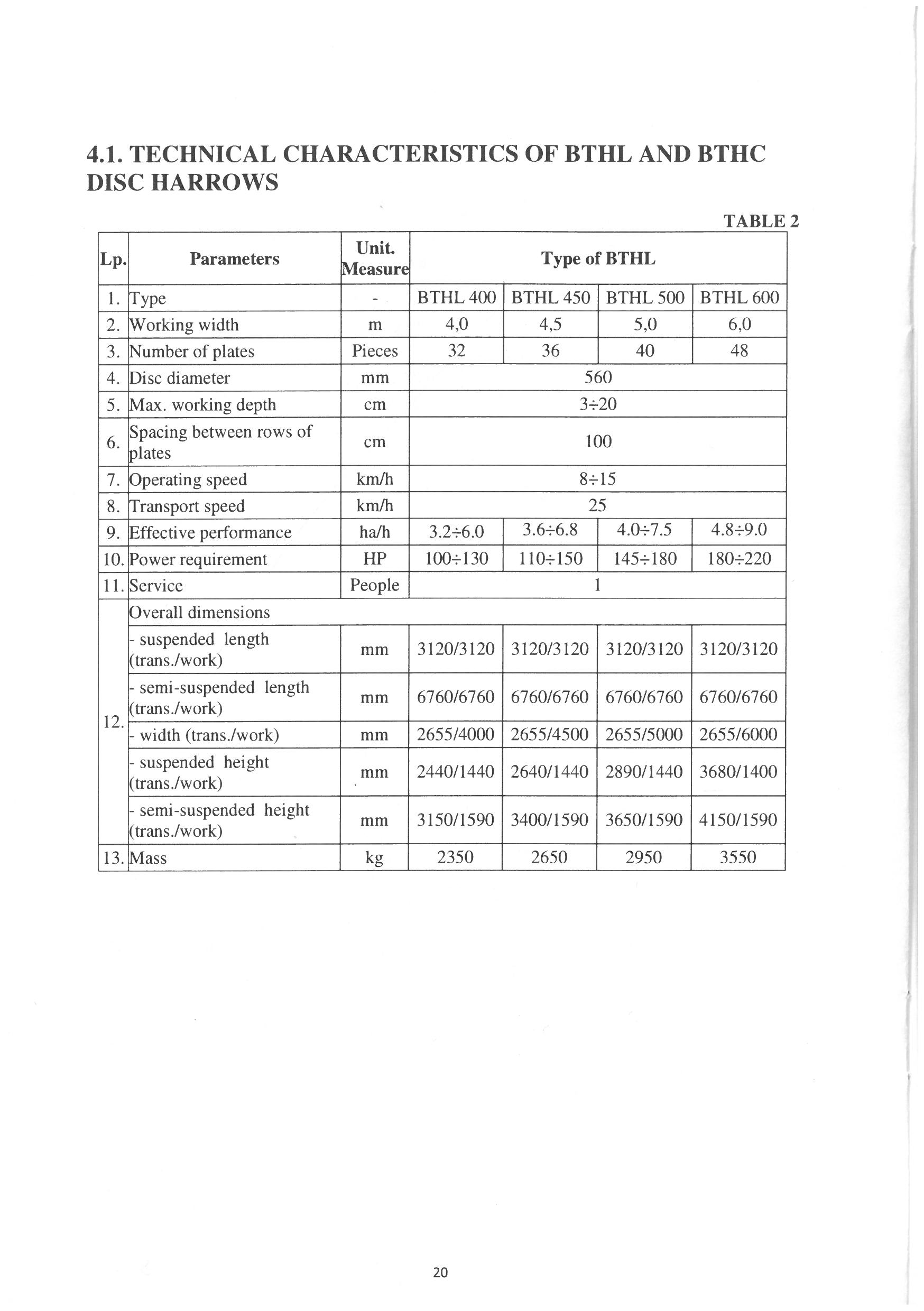 Technická specifikace: Talířový agregát strnišťový BTHL 400