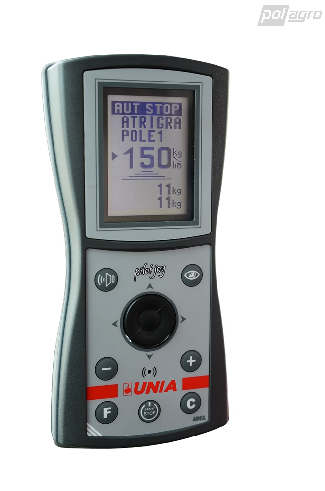- Ovladač PILOT JOY – udržování přednastavené dávky hnojiva nebo vápna nezávisle na rychlosti jízdy (hydraulický pohon pásu)
