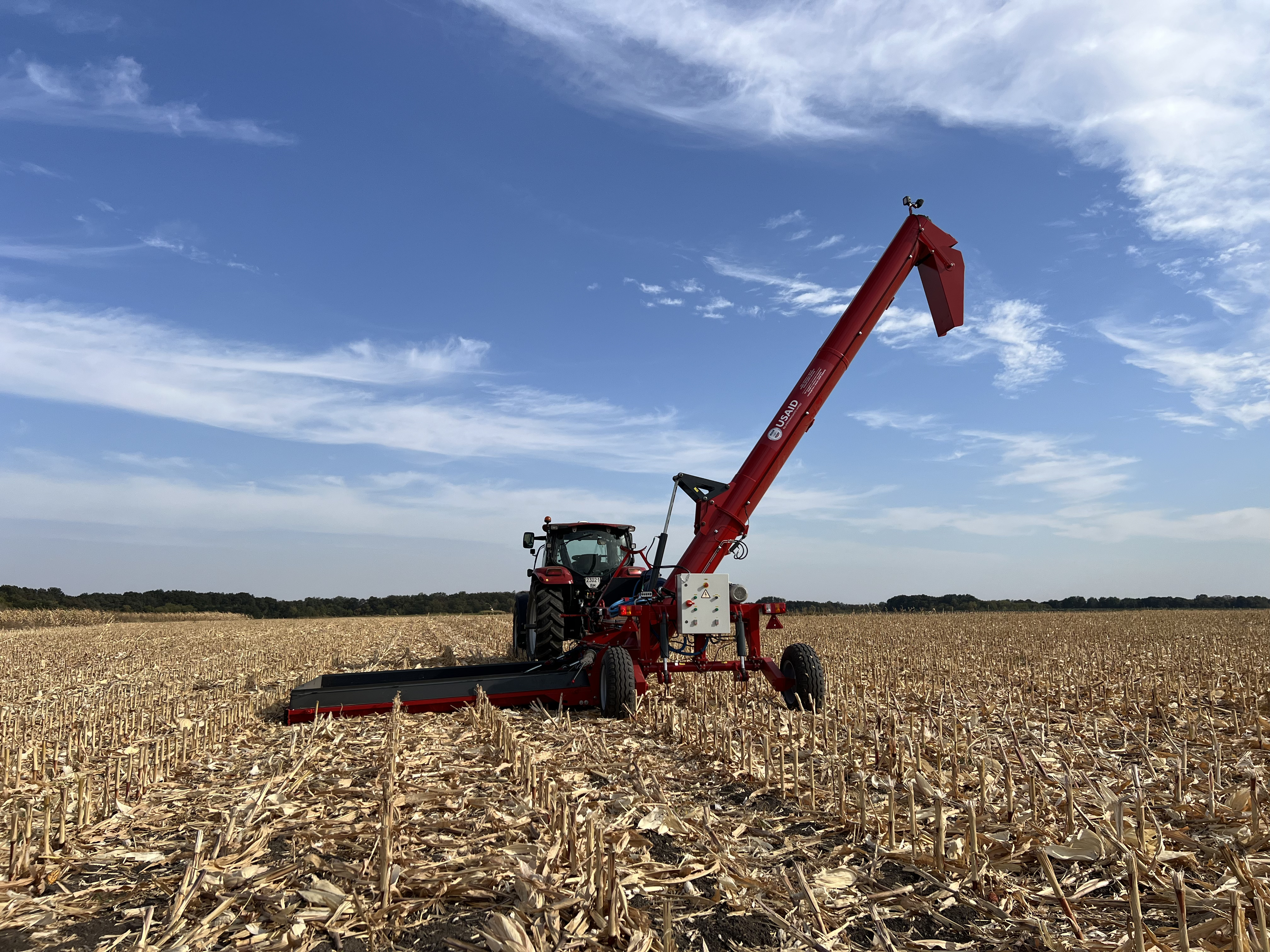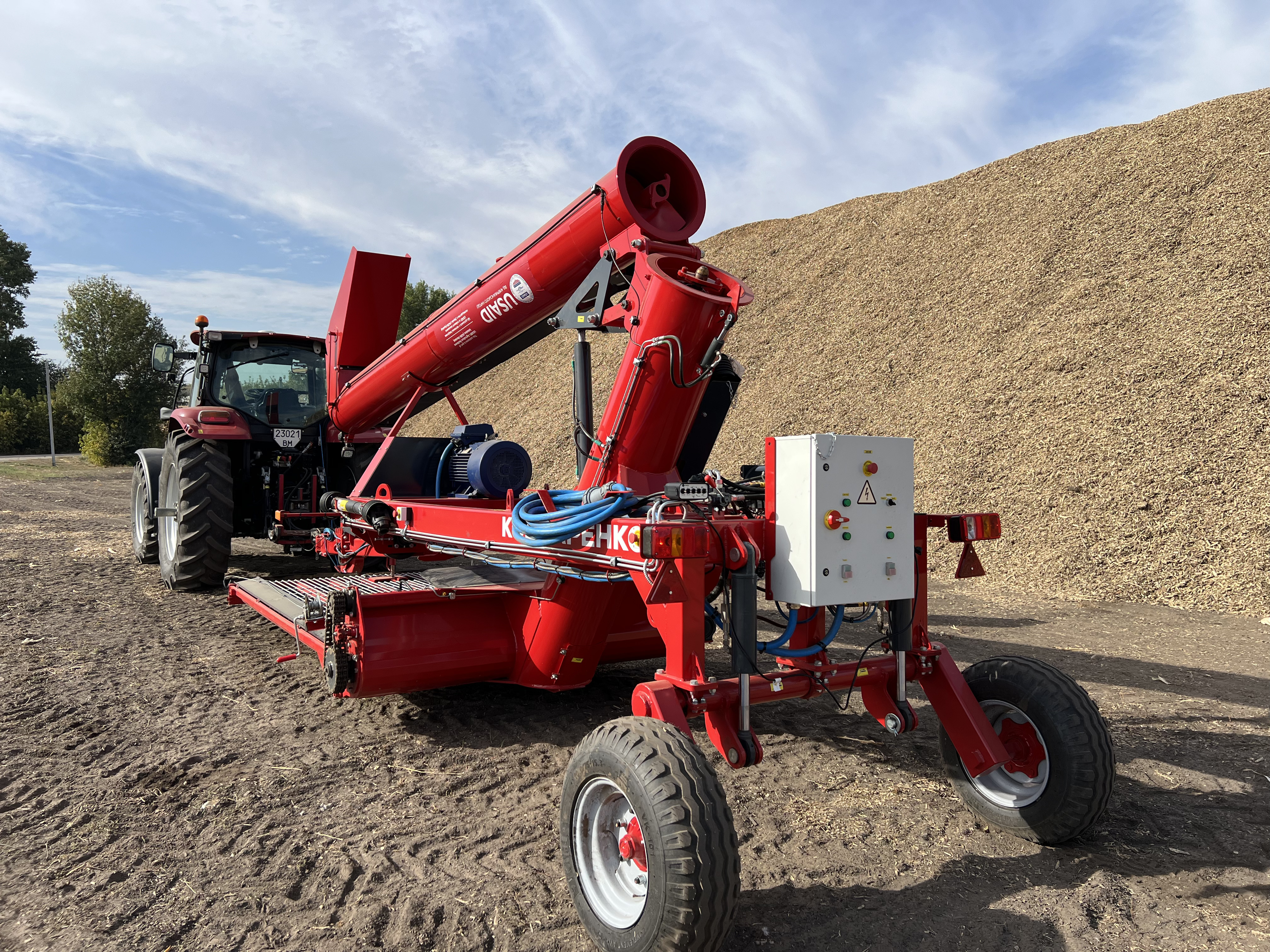 - Konstrukce překladače nezabírá mnoha místa, díký čemuž lze nakládání obilí do přívěsů s minimálními nároky na prostor.