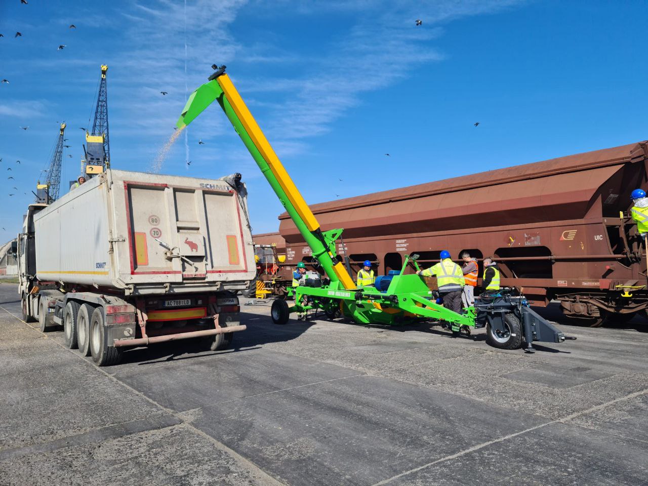 Inovativní vagonový překladač MRW 180 od společnosti Kobzarenko Sp. Z.o.o uřený pro překládku obílí, granulovaných hnojiv, písku a podobných sypkých materiálů – Šnekové zařízení na rámu s pojezdovým systémem, obsahující soustavu horizontálních šneků a jeden sklopný vertikální šnek. Podíl poškození zrna během procesu překládky ≈ 1 %. Rám na podvozku s koly, díký čemuž lze překladač přepravit běžným traktorem. Překladač má soustavu horizontálních šneků, které směřují hmotu (obilí) k velkému horizontálnímu šneku, který směřuje proud obilí do vertikálního šneku pro vykládku. Horizontální šneky jsou poháněny vývodovou hřídelí traktoru (PTO) nebo elektromotorem prostřednictvím soustavy hnacích kol, které jsou poháněny od vývodové hřídele traktoru řetězem kardanových hřídelí a reduktorů. Horizontální šneky se uvádějí do chodu hydraulickým válcem, který otáčí šneky v kruhu. Na otočném talíři je instalována zarážka otáčení, která chrání v transportní poloze před náhlou poruchou hydraulického systému. Zařízení je vybaveno osvětlením pro přepravu zařízení po veřejných komunikacích.