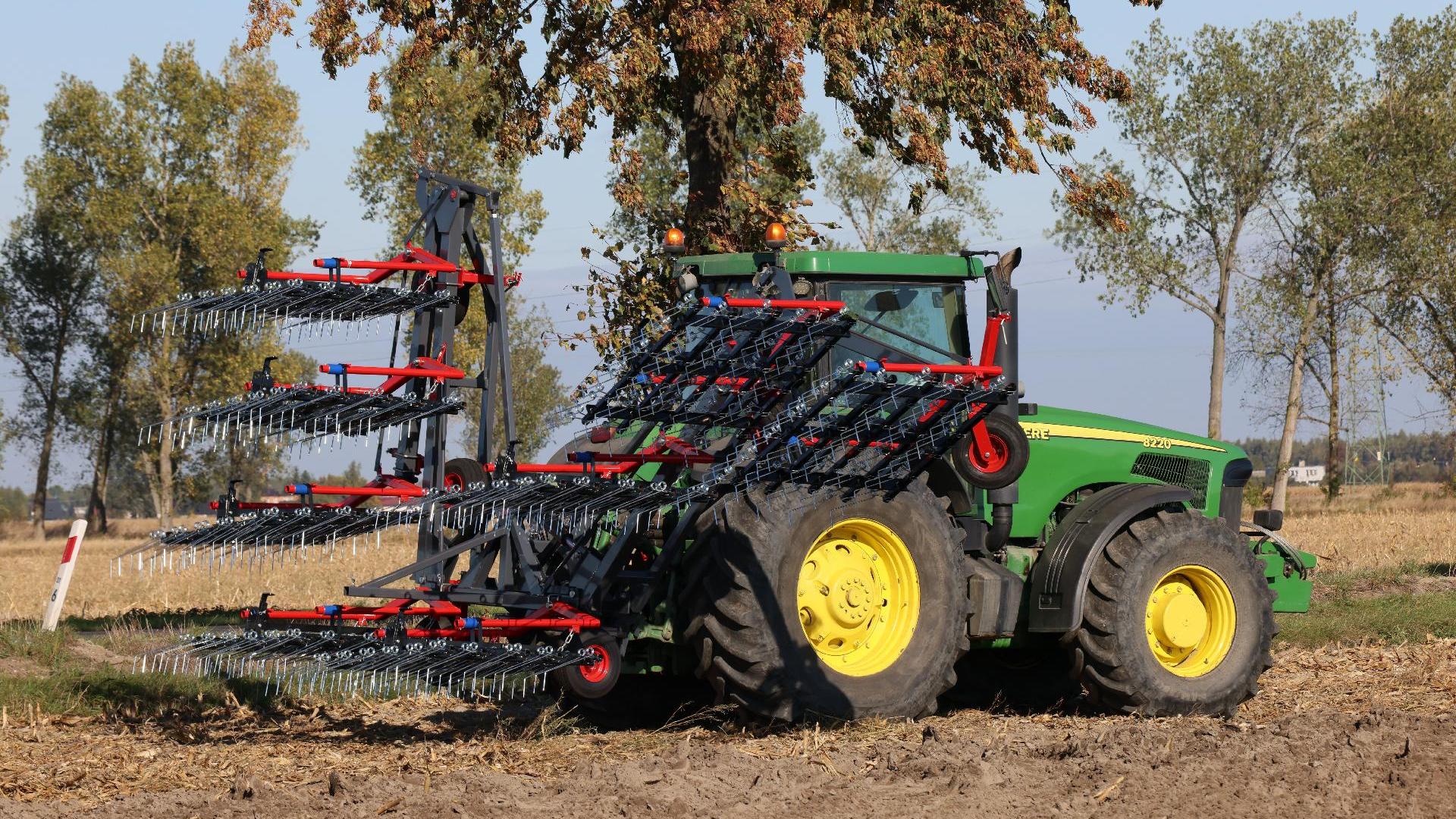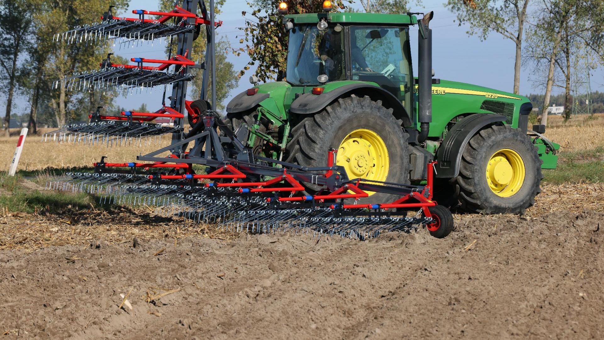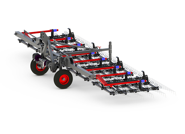 Prutové brány FOX 9 se využívají především pro mechanické pletí v ekologických provozech. Segmentový rám s pružinovými palci o průměru 7 mm se stavitelným úhlem přítlaku je rozkládaný hydraulicky.