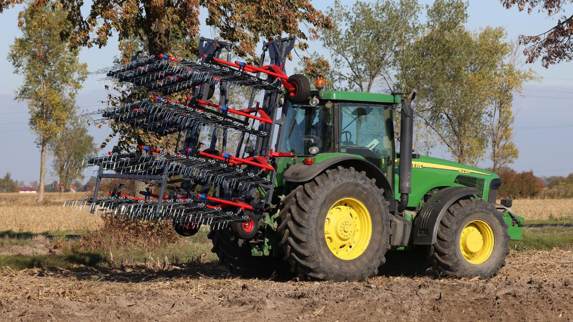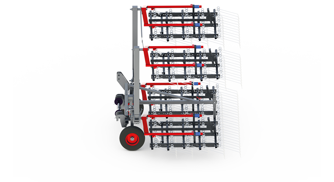 Prutové brány FOX 12 se využívají především pro mechanické pletí v ekologických provozech. Segmentový rám s pružinovými palci o průměru 7 mm se stavitelným úhlem přítlaku je rozkládaný hydraulicky.