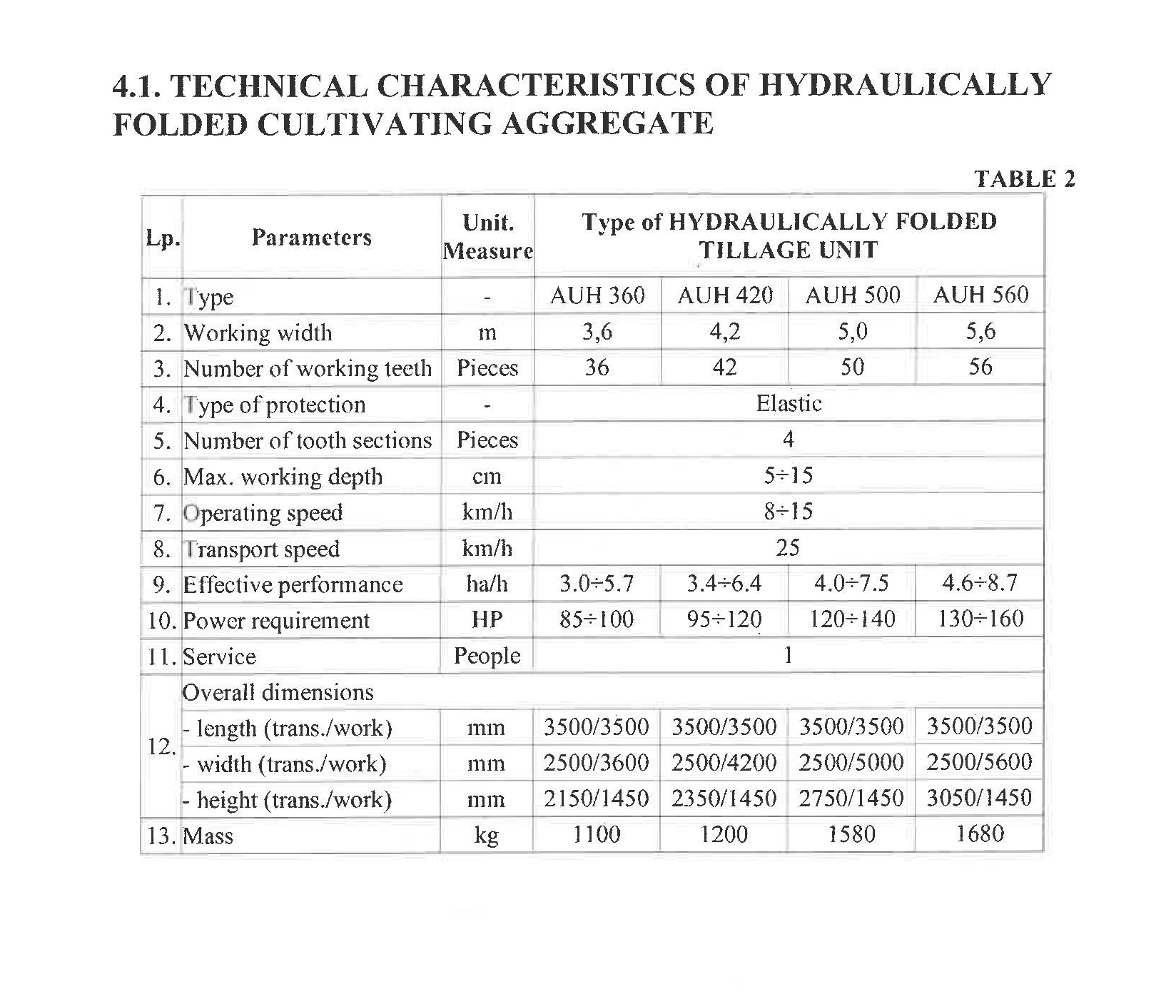 Technická specifikace: Kultivátor předseťový AUH 3,6