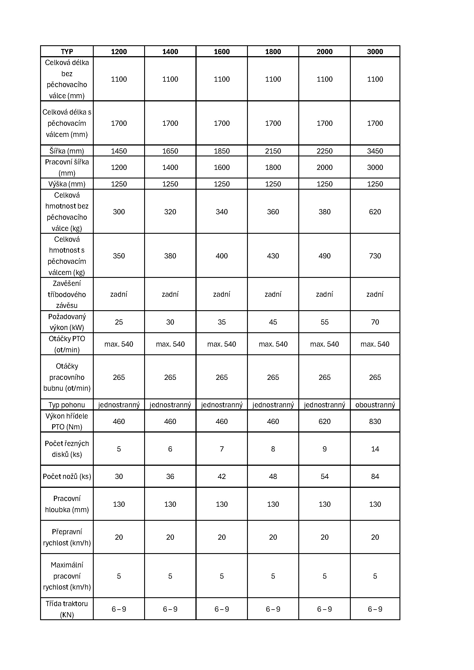 | Pracovní záběr | 1200/1400/1600/1800/2000/3000 mm |