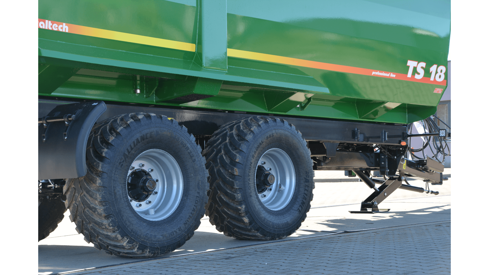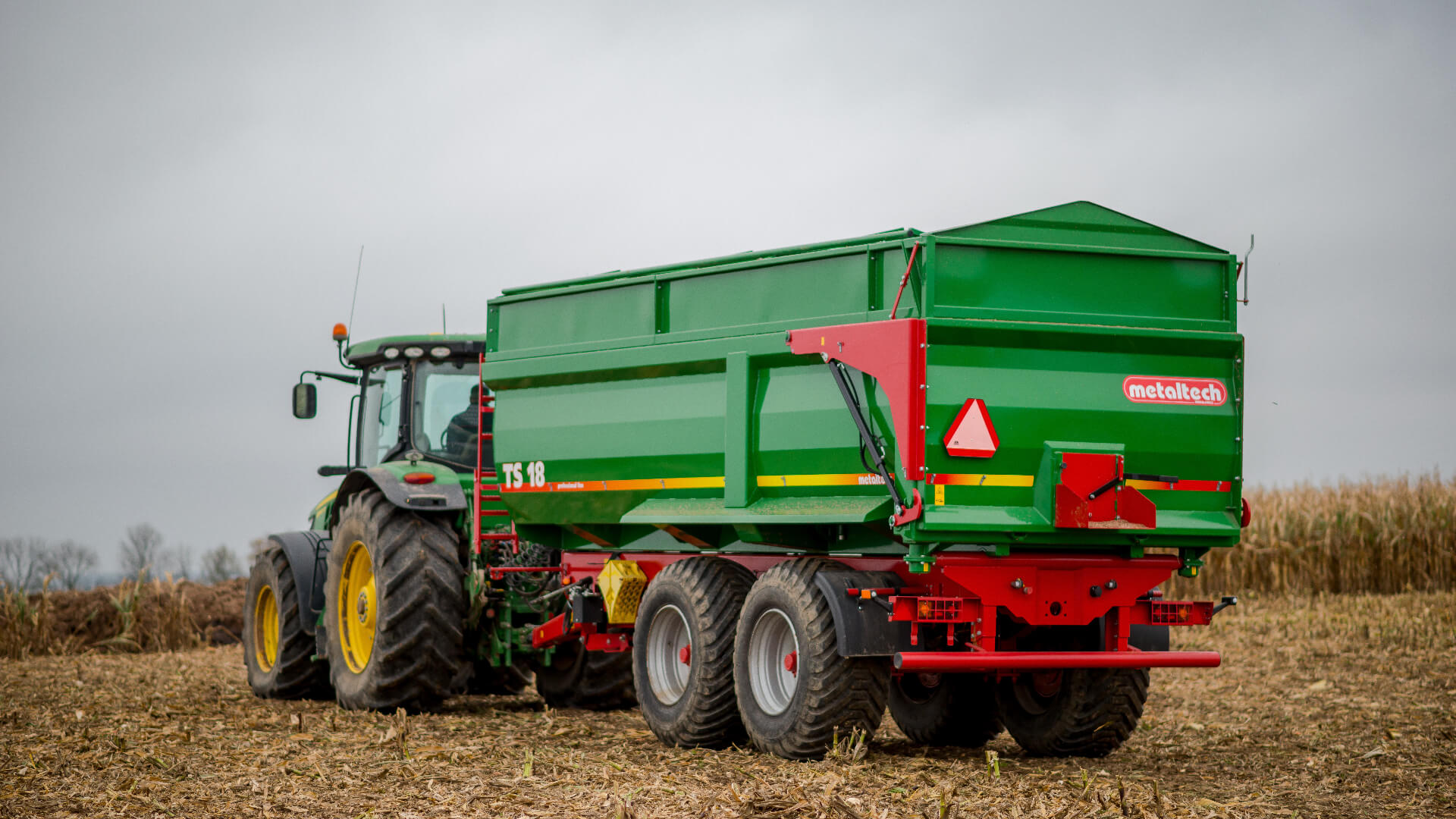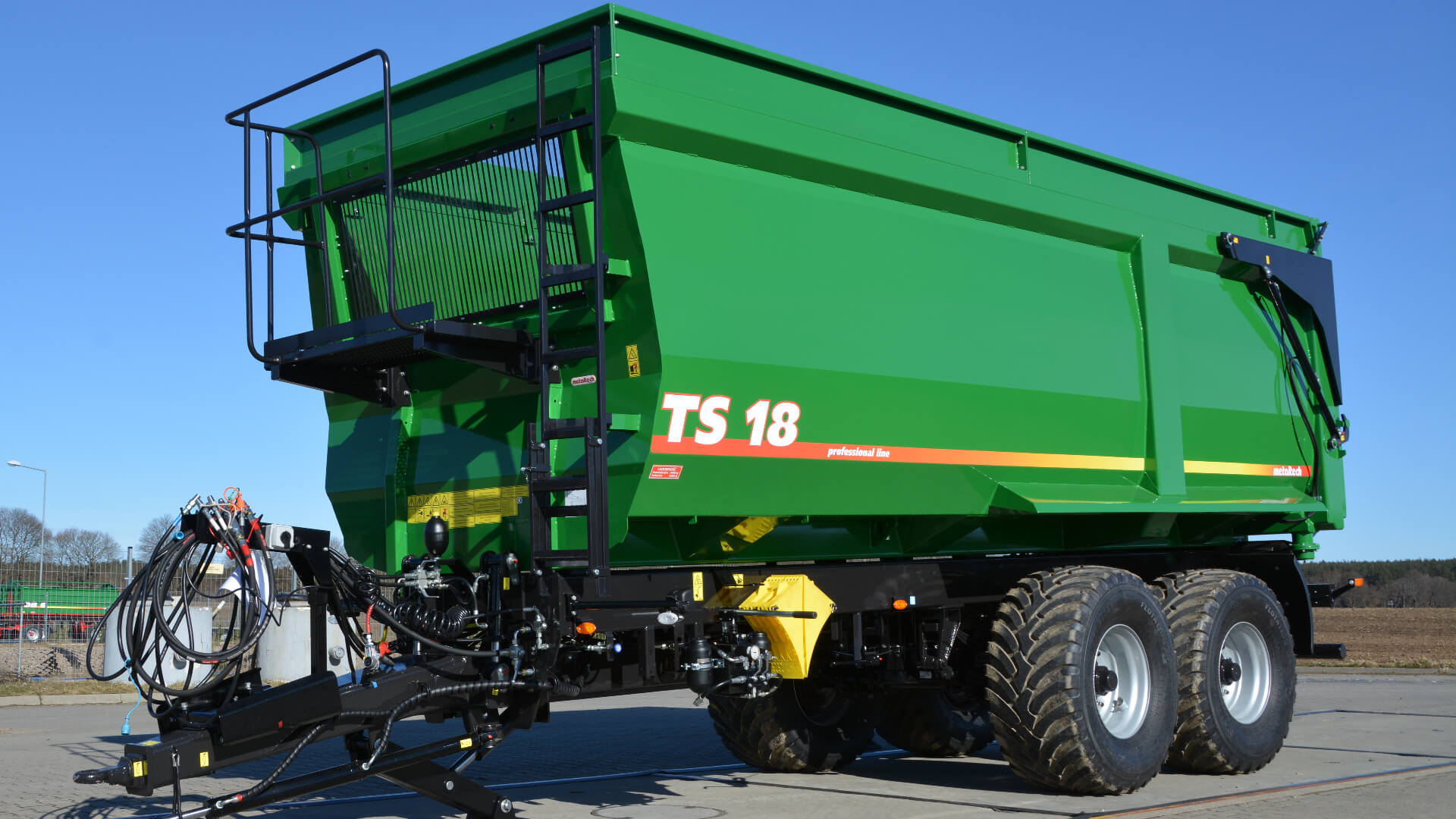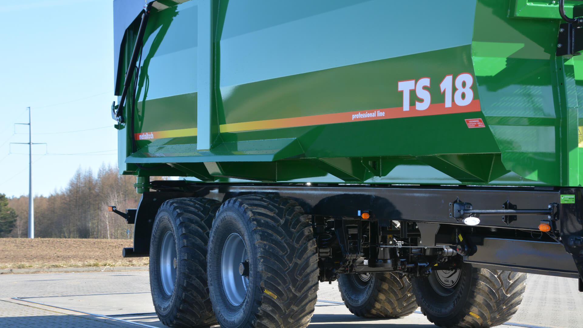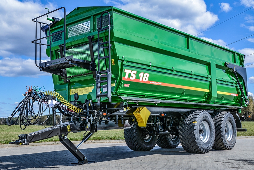 Traktorové přívěsy Metaltech TS se vyznačují vnitřkem ložné korby, který je hladký, čímž se minimalizuje poškození zemědělských produktů během nakládky a vykládky. Hydraulicky zvedaná zadní stěna umožňuje pohodlnou, efektivní a bezpečnou vykládku přepravovaných produktů. Vysoká těsnost umožňuje přepravu sypkých materiálů bez jakéhokoliv dodatečného těsnění. Zadní stěna je vybavena dodatečným výsypným žlabem. Výhodou přívěsů je robustní a kompaktní konstrukce, která je vhodná pro práci v náročných polních podmínkách. Ve srovnání s bočnicovými přívěsy nabízejí tyto přívěsy lepší těsnost, protože jedinou pohyblivou částí je zadní stěna a v případě dodatečné výbavy i boční sklápění.