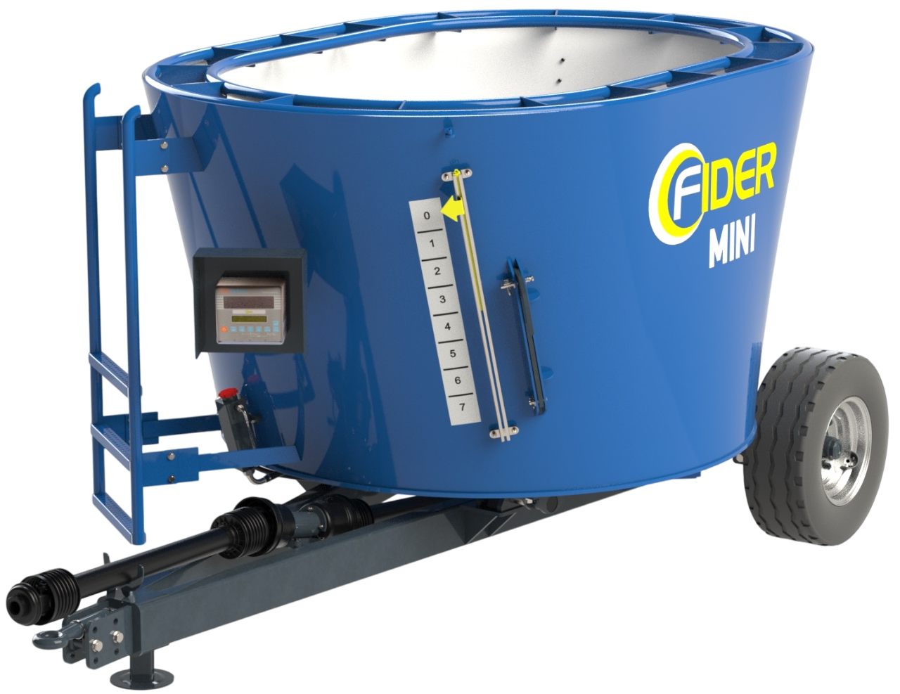 Krmný vůz ZAMET FIDER MINI je zemědělský stroj určený pro míchání a rozdělování krmiva pro hospodářská zvířata, především pro skot. Třísenzorová váha s akusticko-vizuálním ukazatelem, nože vyrobeny z oceli Hardox. Vyskladňovací pás do žlabu.