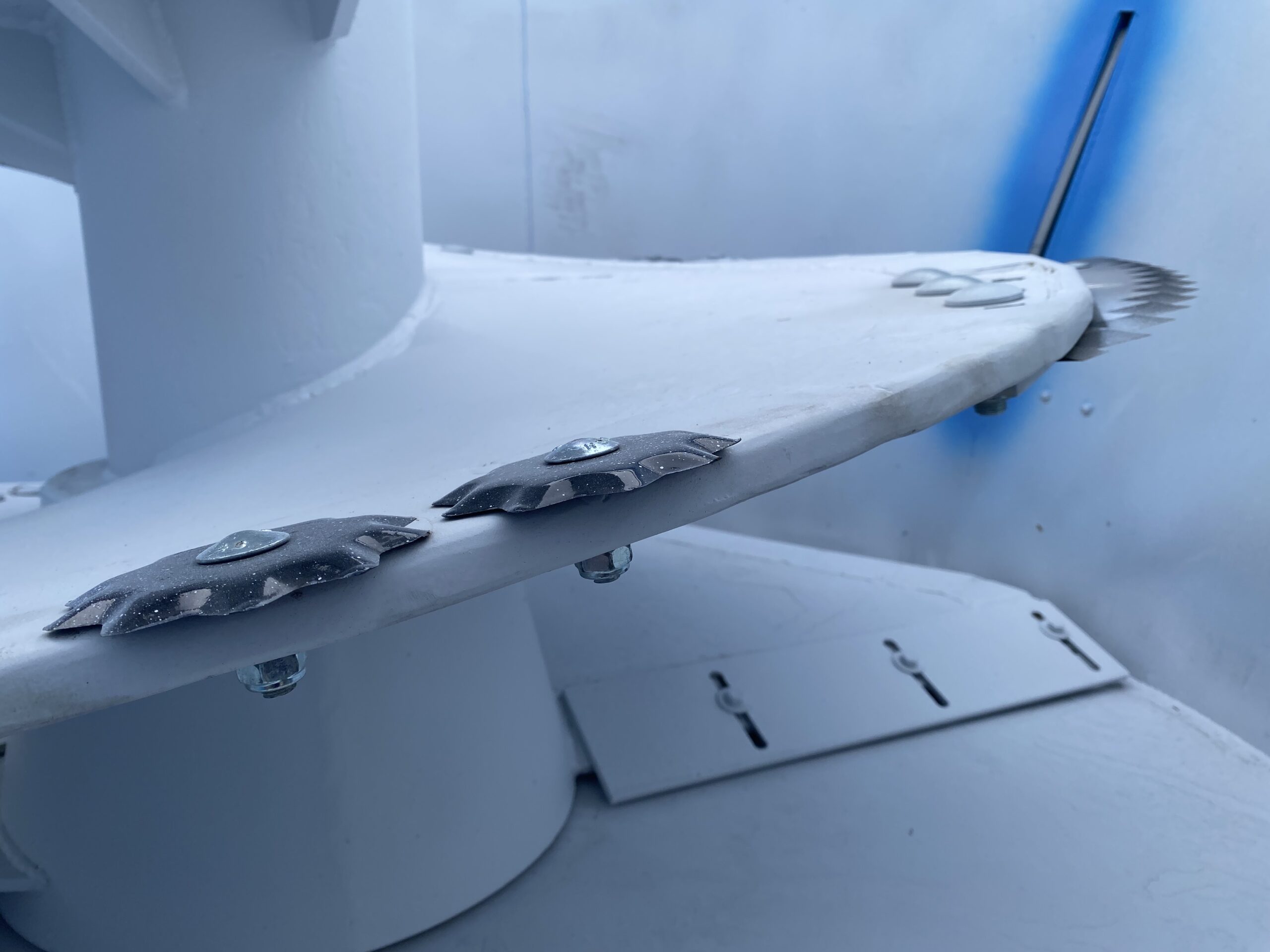 - Další „trojúhelníkové“ ostřihávací nože instalované na protilehlých stěnách míchacího koše, které způsobují rychlejší řezání a míchání