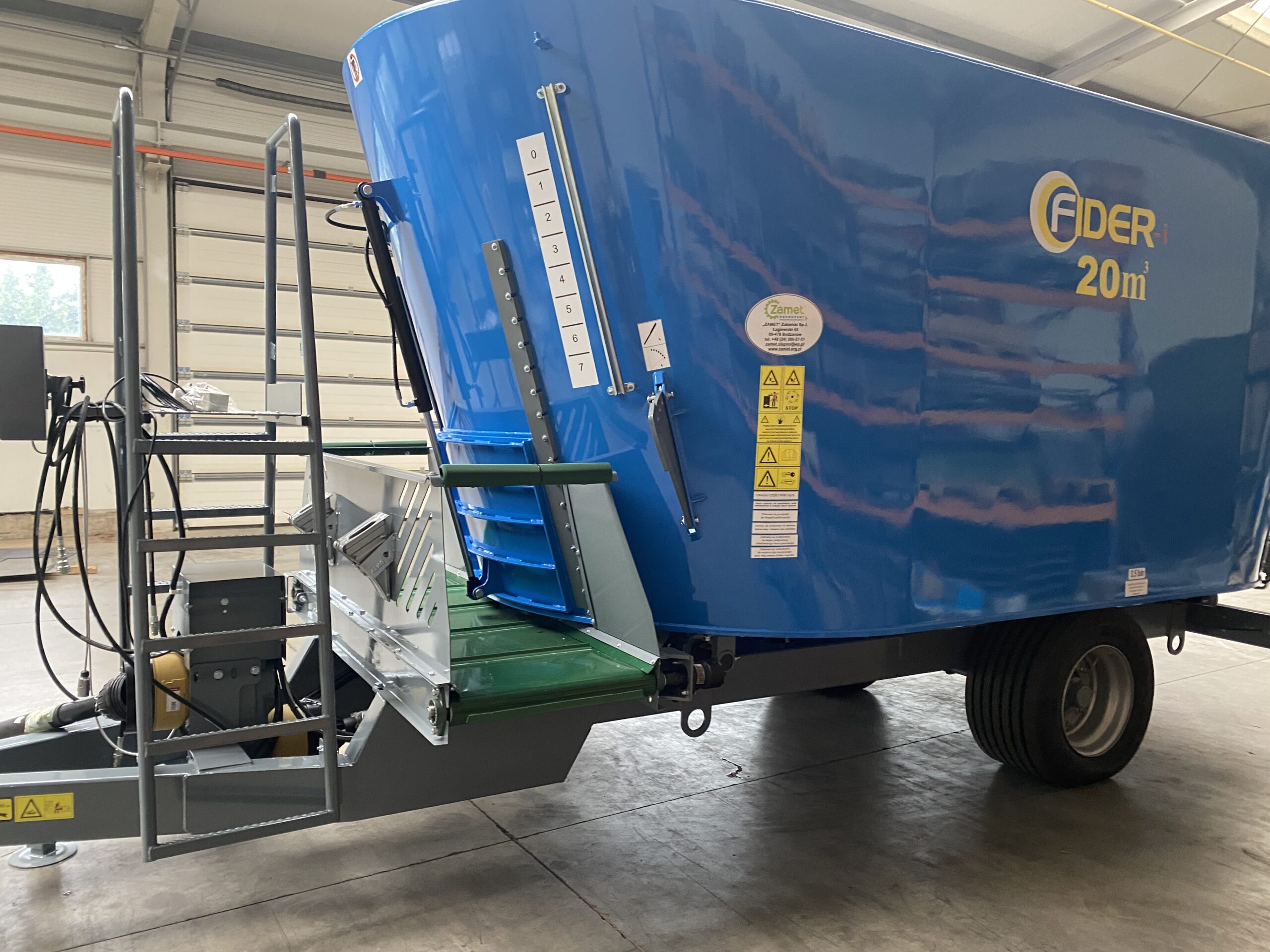 Krmný vůz ZAMET FIDER 2S, se dvěmi posuvnými šneky je zemědělský stroj určený pro míchání a rozdělování krmiva pro hospodářská zvířata, především pro skot. Čtyřsenzorová váha s akusticko-vizuálním ukazatelem, nože vyrobeny z oceli Hardox. Vyskladňovací pás do žlabu.