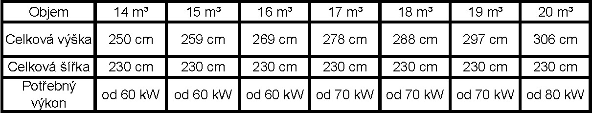 Lze pořídít ve variantě s objem 14, 15, 16, 17, 18, 19, 20 m³.