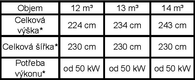 Lze pořídít ve variantě s objem 12, 13, 14 m³.