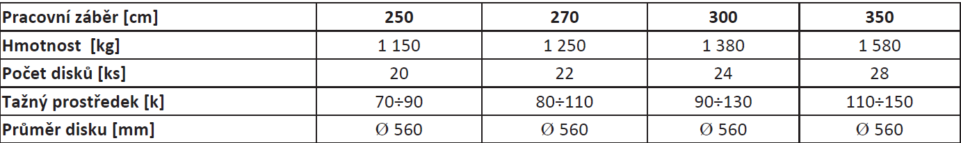 - Dvě řady disků 560 mm s rozchodem sekcí 100 cm